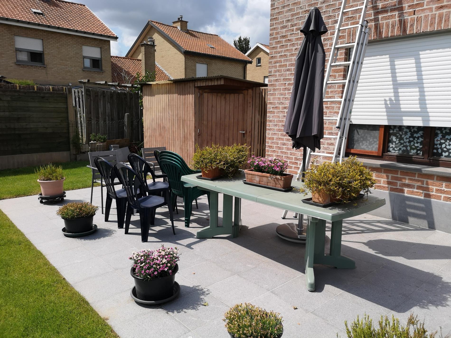 Tevens mag men gebruik maken van de gemeenschappelijke fietsenberging, op het gelijklvoers is er een gemeenschappelijk terras die gedeeld kan worden met de bovenbuur. Publieke parking net voor de deur.