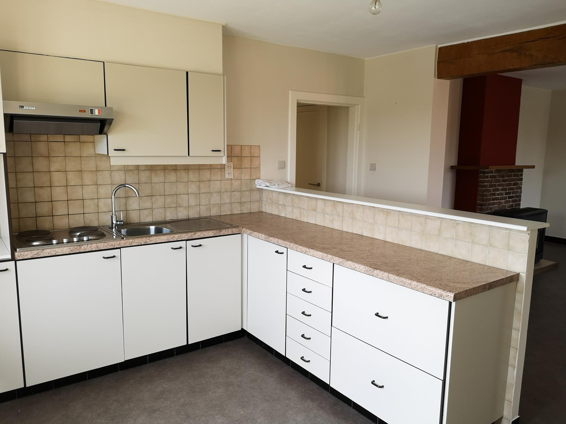 Het appartement is gelegen op de eerste verdieping en heeft volgende indeling: inkom, lichtrijke open keuken met leefruimte, badkamer, zéér ruime slaapkamer en aparte kinderkamer met berging/dressing.