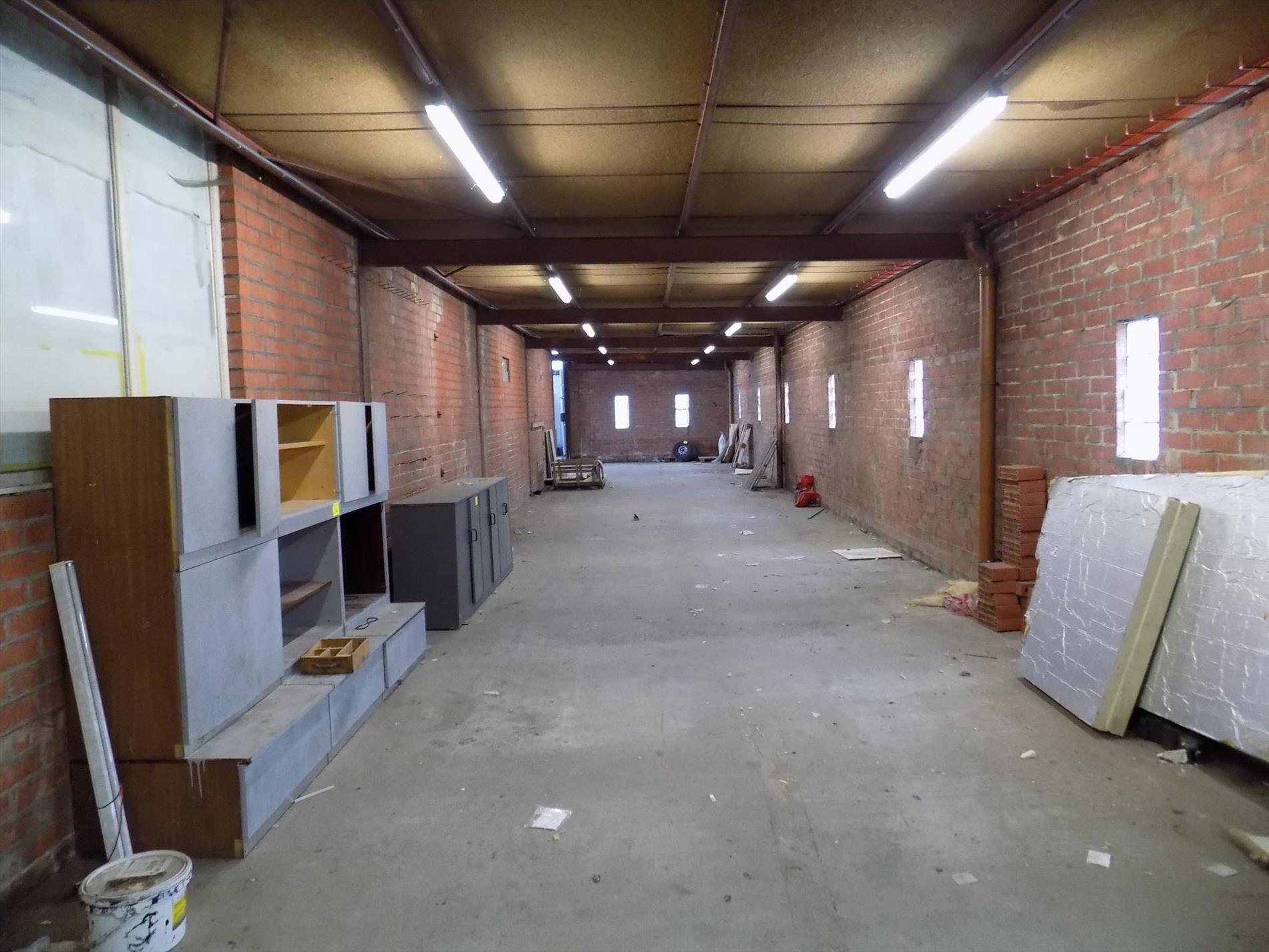 Magazijn toegankelijk via een automatische sectionale poort bestaande uit een open ruimte van +/- 300m² met een mooie vrije hoogte en een extra ruimte van 192m² inclusief een kantoor. Dichtbij de op- en afrit van de autosnelweg.