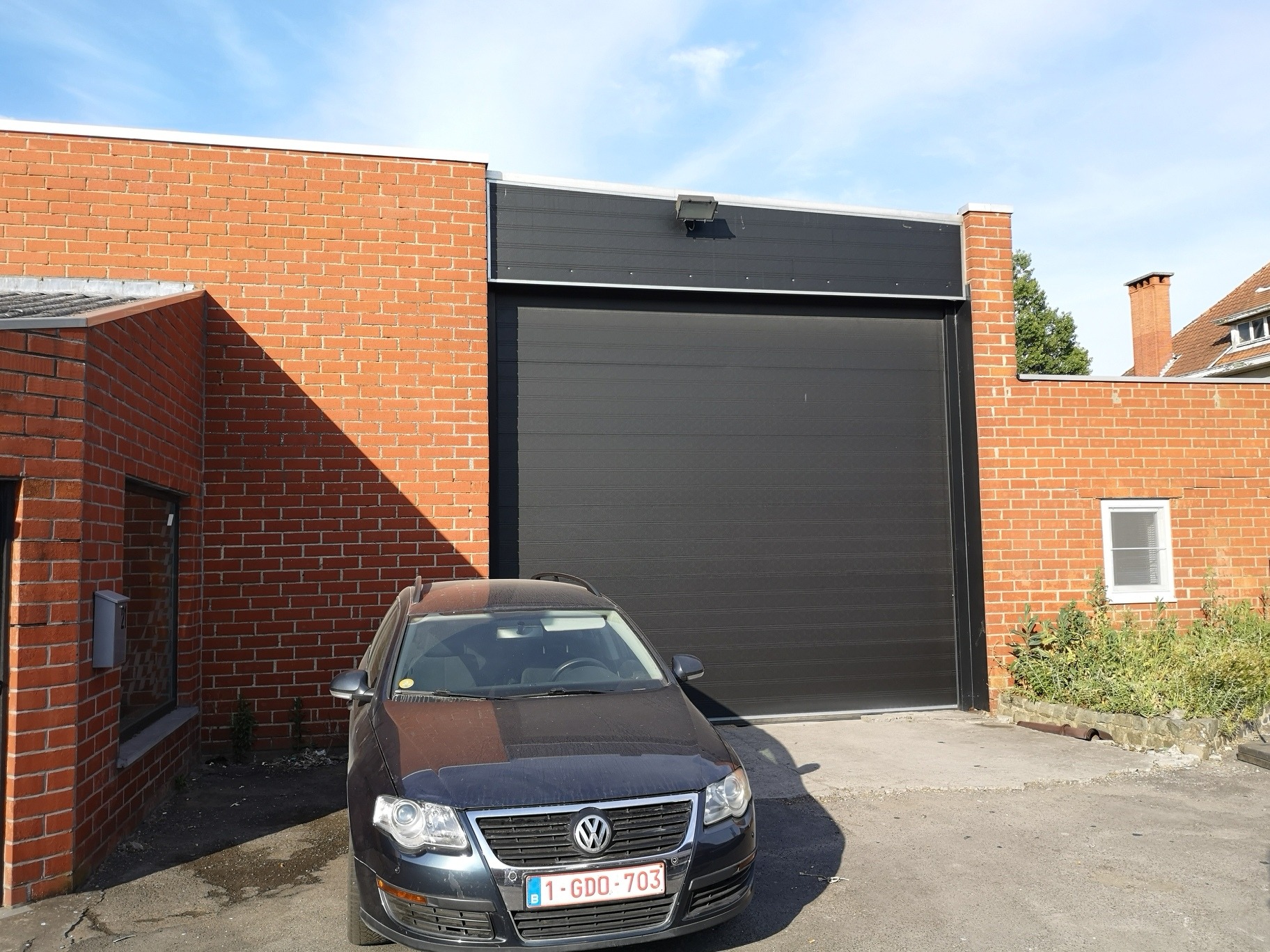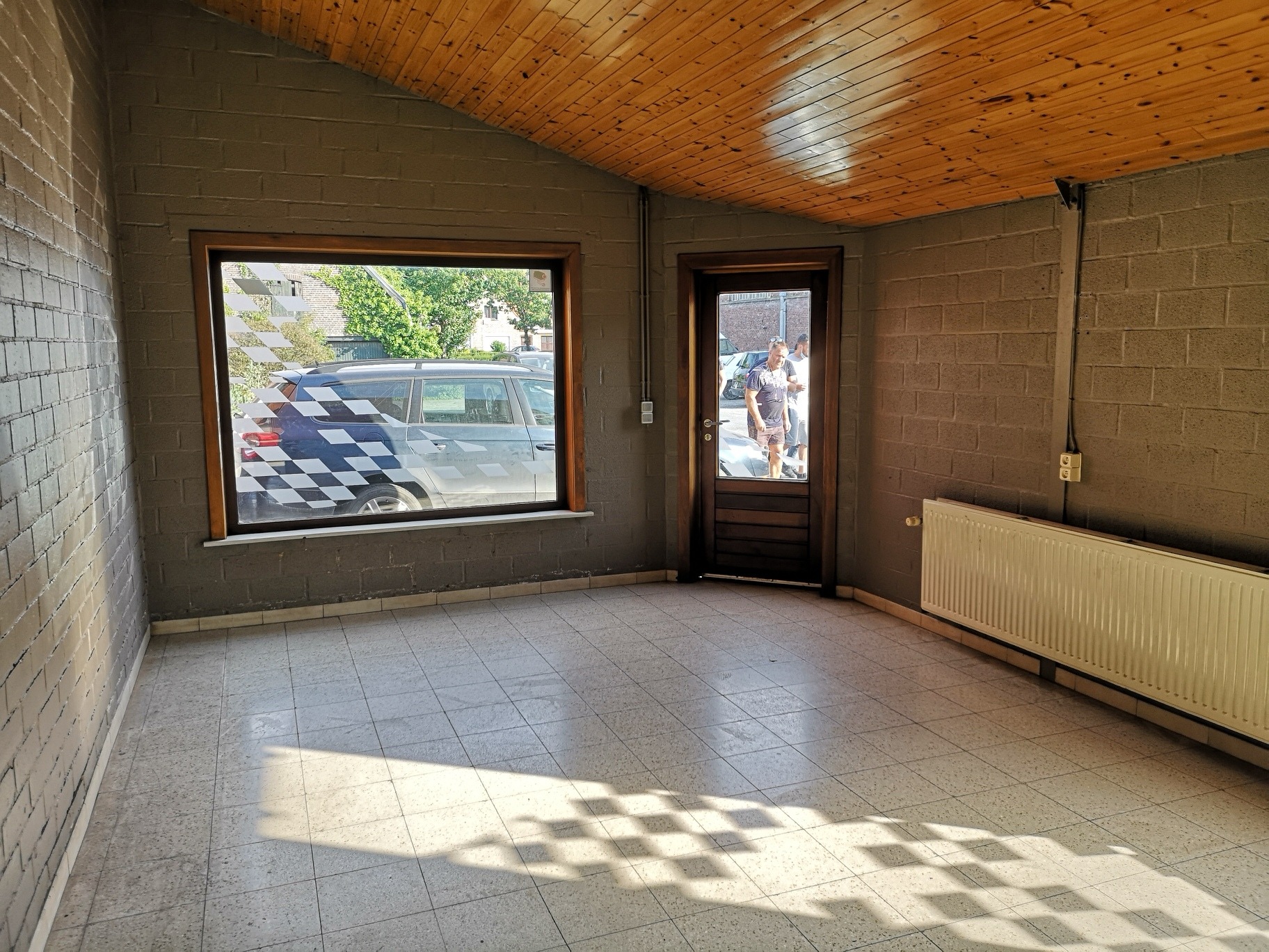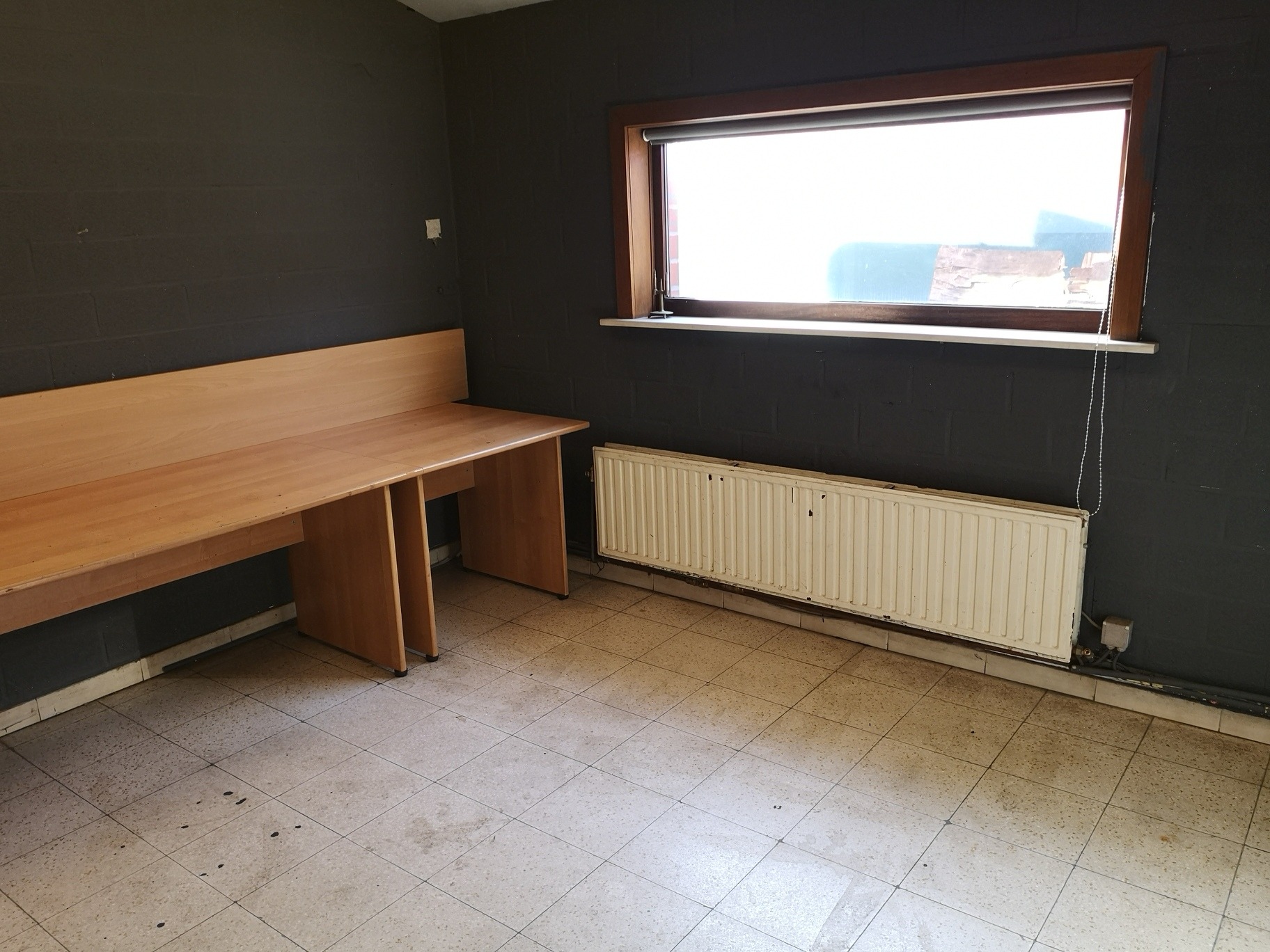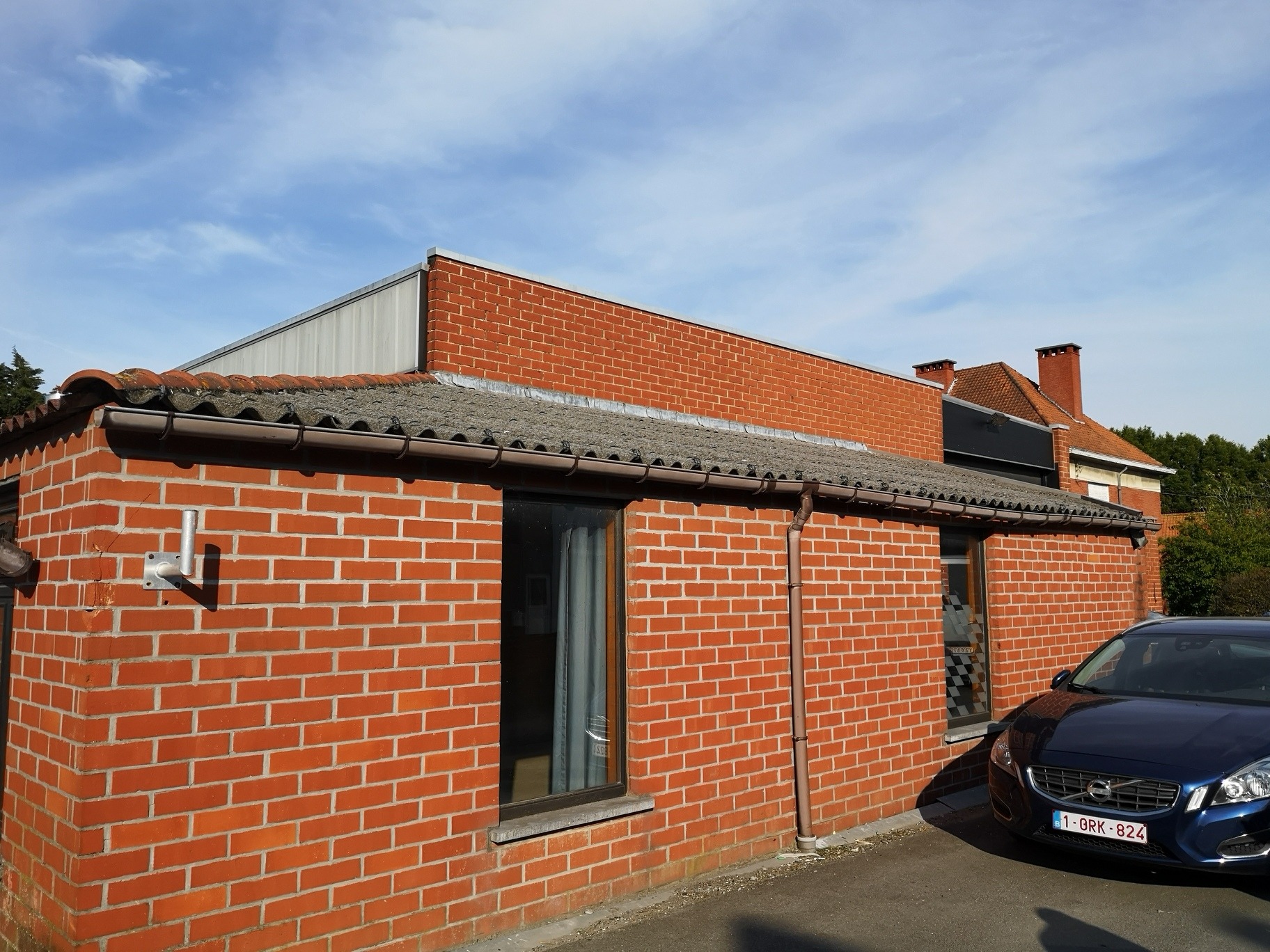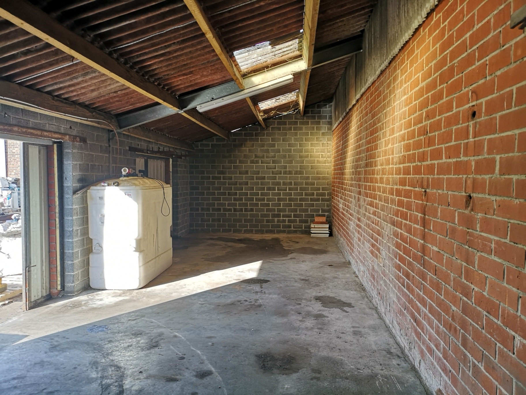Magazijnruimte van +/- 350m² en 90m² burelen. Toegankelijk via een sectionale poort, mooie vrije hoogte en lichtrijk.