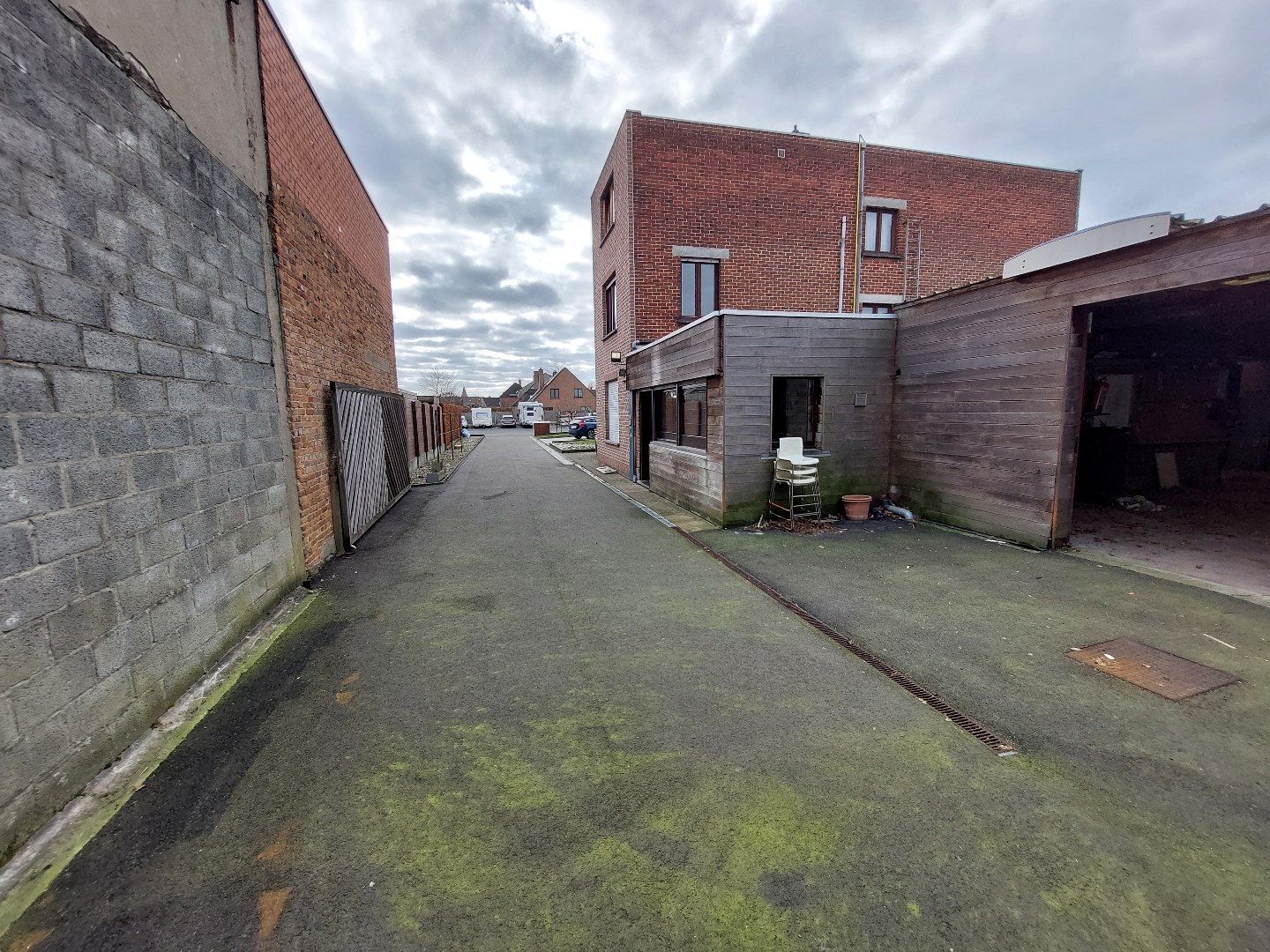 Mogelijkheid om te laden en te lossen. Inrit poort 2m50 x 4m20. Vrije hoogte +/- 2m60.