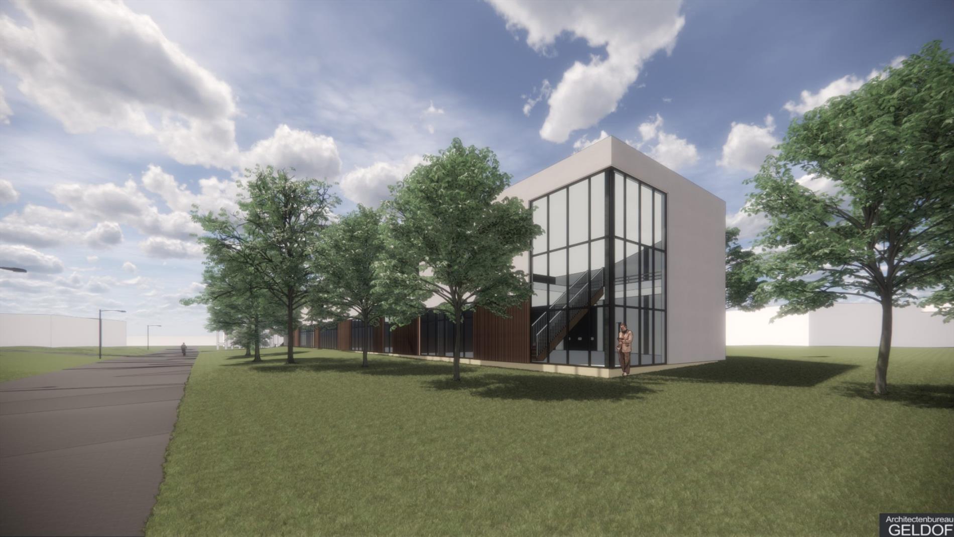Elke module heeft achteraan een grote sectionale poort en vooraan ruime parking.