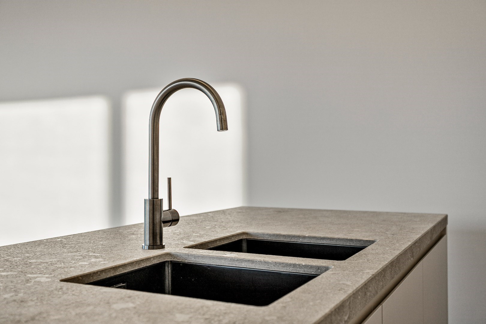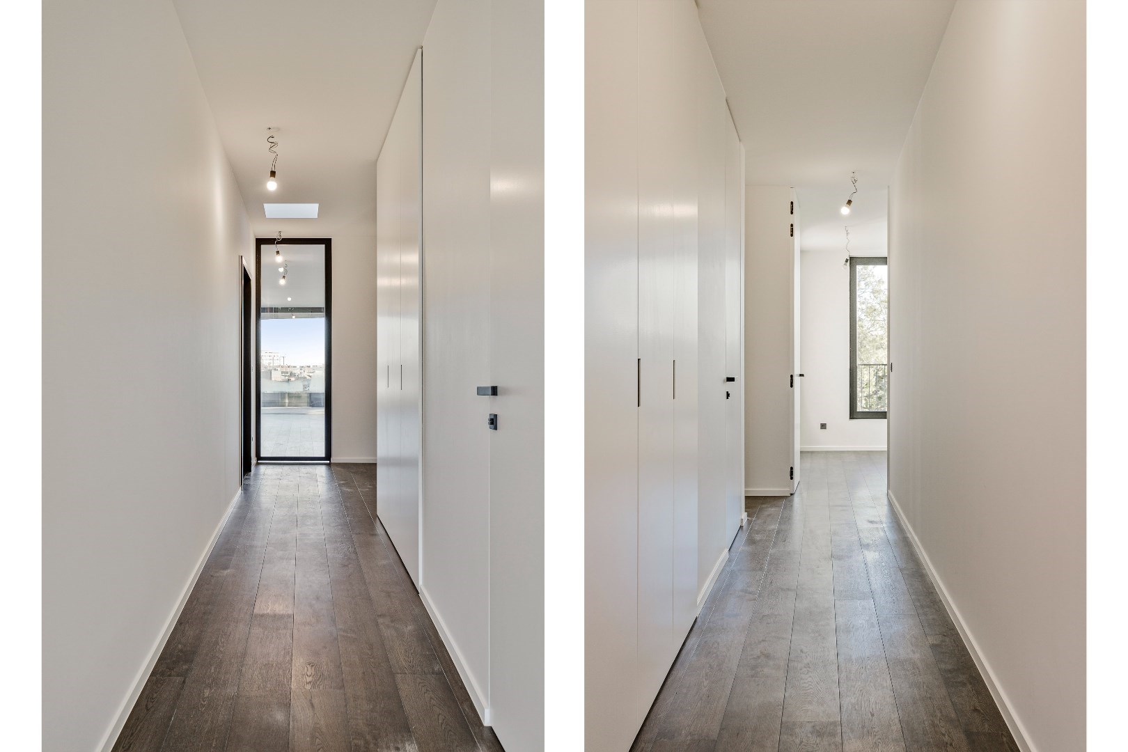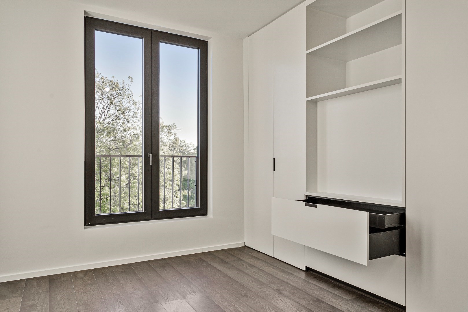 Bij de inrichting werd heel veel aandacht besteed aan een onberispelijke afwerking en het gebruik van superieure materialen. Zo is er een Wilfra keuken met Miele toestellen en werkbladen in schitterend anticato marmer. Er ligt overal parket en in de badkamers en toiletten een prachtige tegelvloer. Beide slaapkamers zijn afgewerkt met op maat gemaakte, kamerhoge kasten. De hoogwaardige verlichtingsarmaturen werden ondertussen ook geplaatst, dit was nog niet overal het geval op de foto's. Het verluchtingssysteem met warmterecuperatie zorgt samen met de vloerverwarming voor een aangenaam leefklimaat. De ruime hall met geïntegreerde vestiairekast, geeft toegang tot het afzonderlijk toilet en de grote berging.