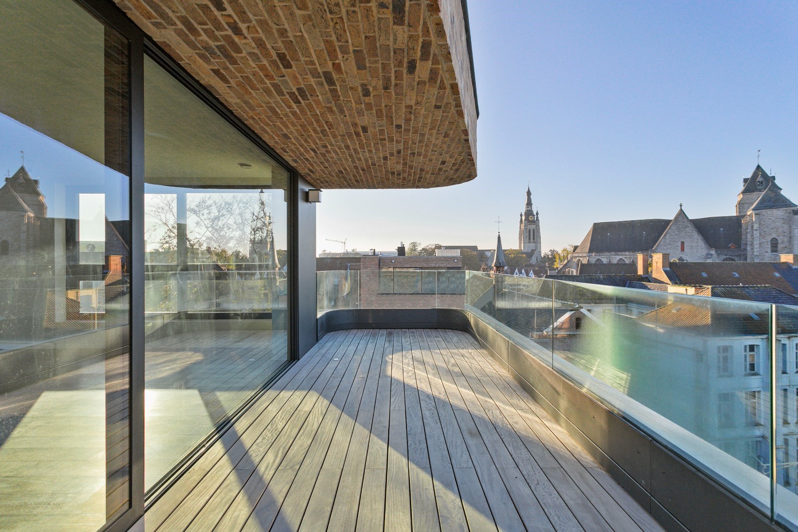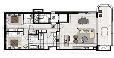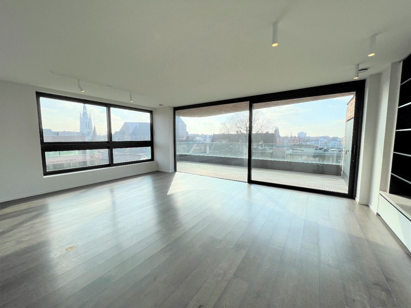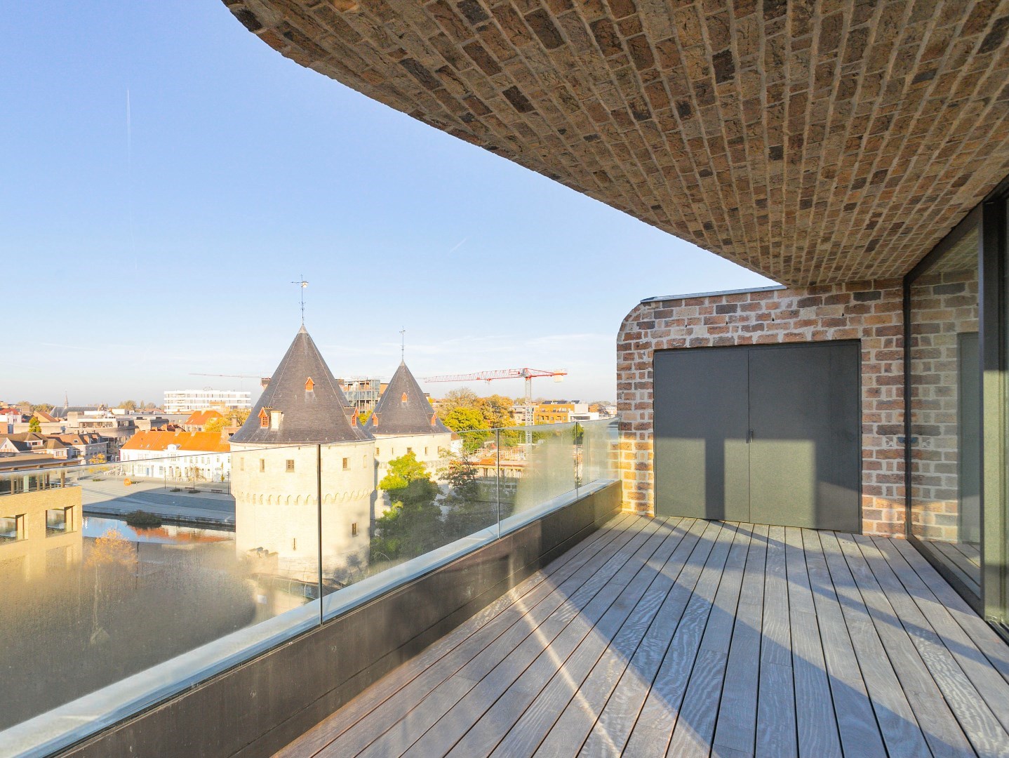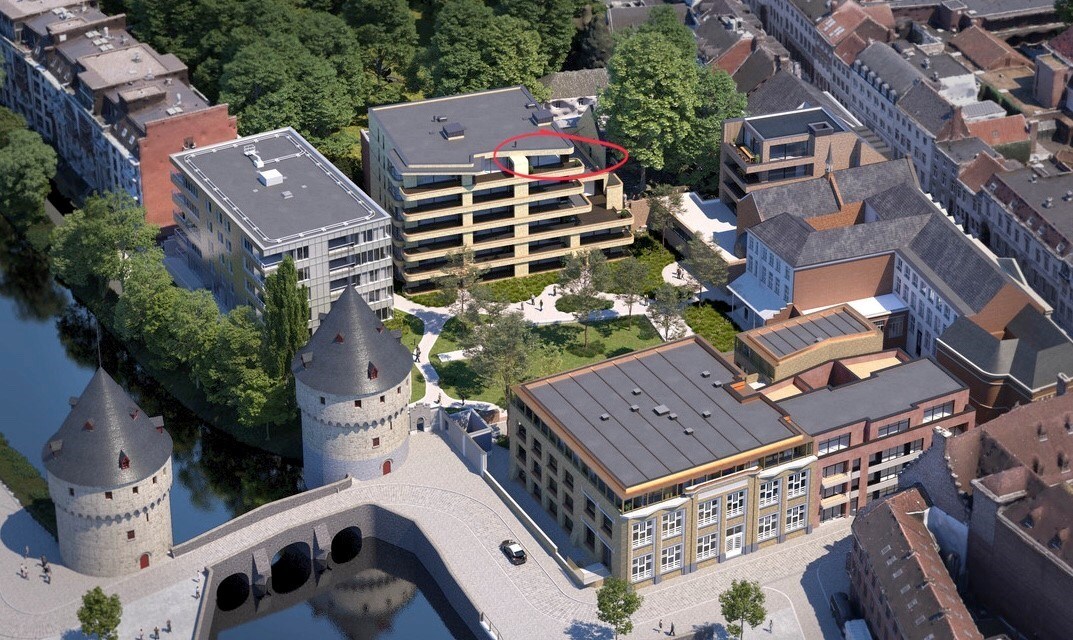 Indrukwekkende luxe drie-gevel penthouse in het nieuwbouwproject “One Broel" met panoramisch zicht op de Broeltorens, en de verlaagde Leieboorden. Unieke rustige ligging in het historisch centrum, midden in het groen van het nieuwe Paulientjespark en de historische tuin Messeyne.