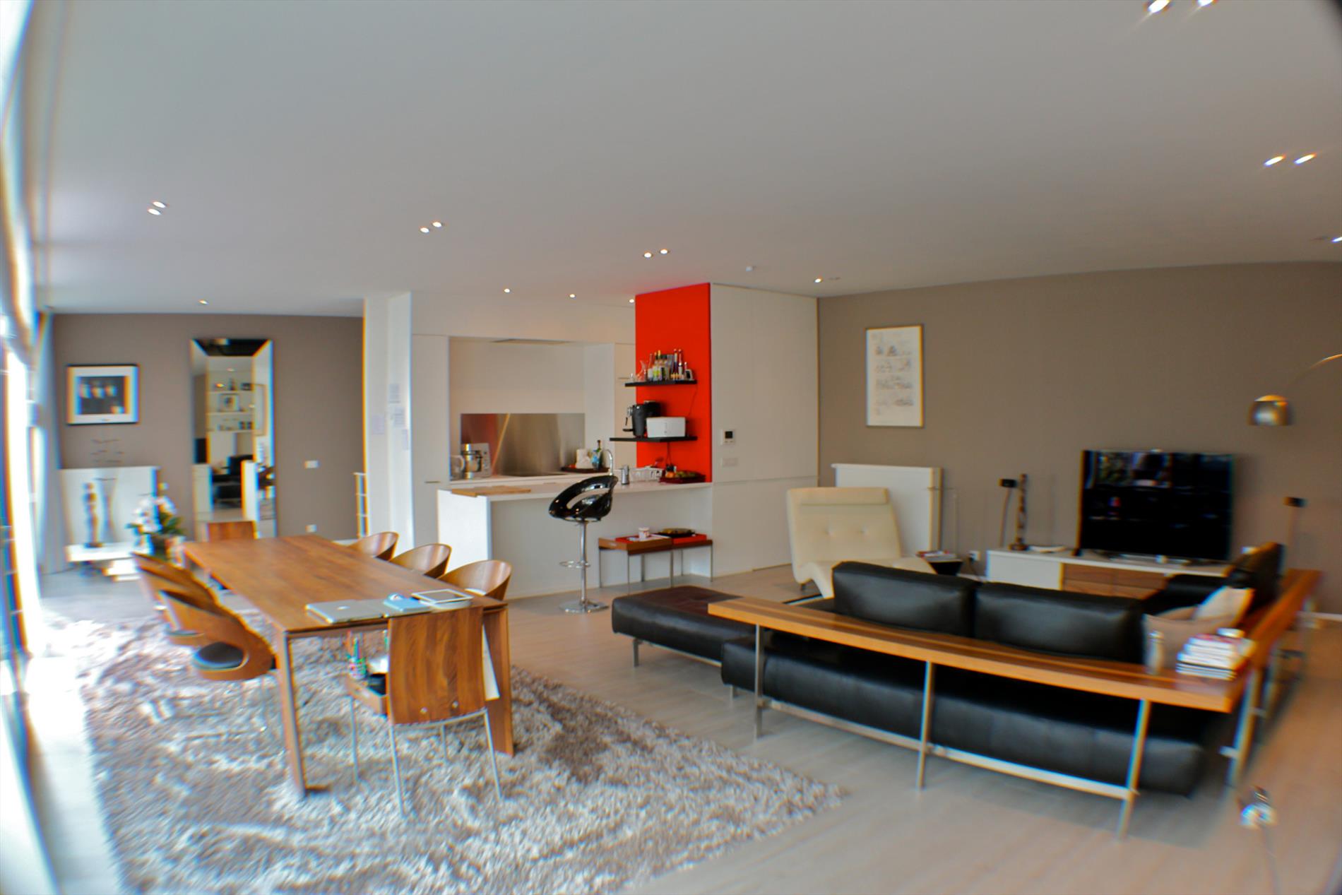 Loft 5, Magnifique penthouse / duplex de 200m² et 1 terrasse de 40m². Composé comme suit; Hall d'entrée avec vestiaire et toilette séparée, une buanderie, un salon TV, trois belles chambres, salle douche et une salle de bains. A l'étage, un grand salon lumineux donnant sur une grande terrasse, cuisine équipée. Eventuellement avec double garage.