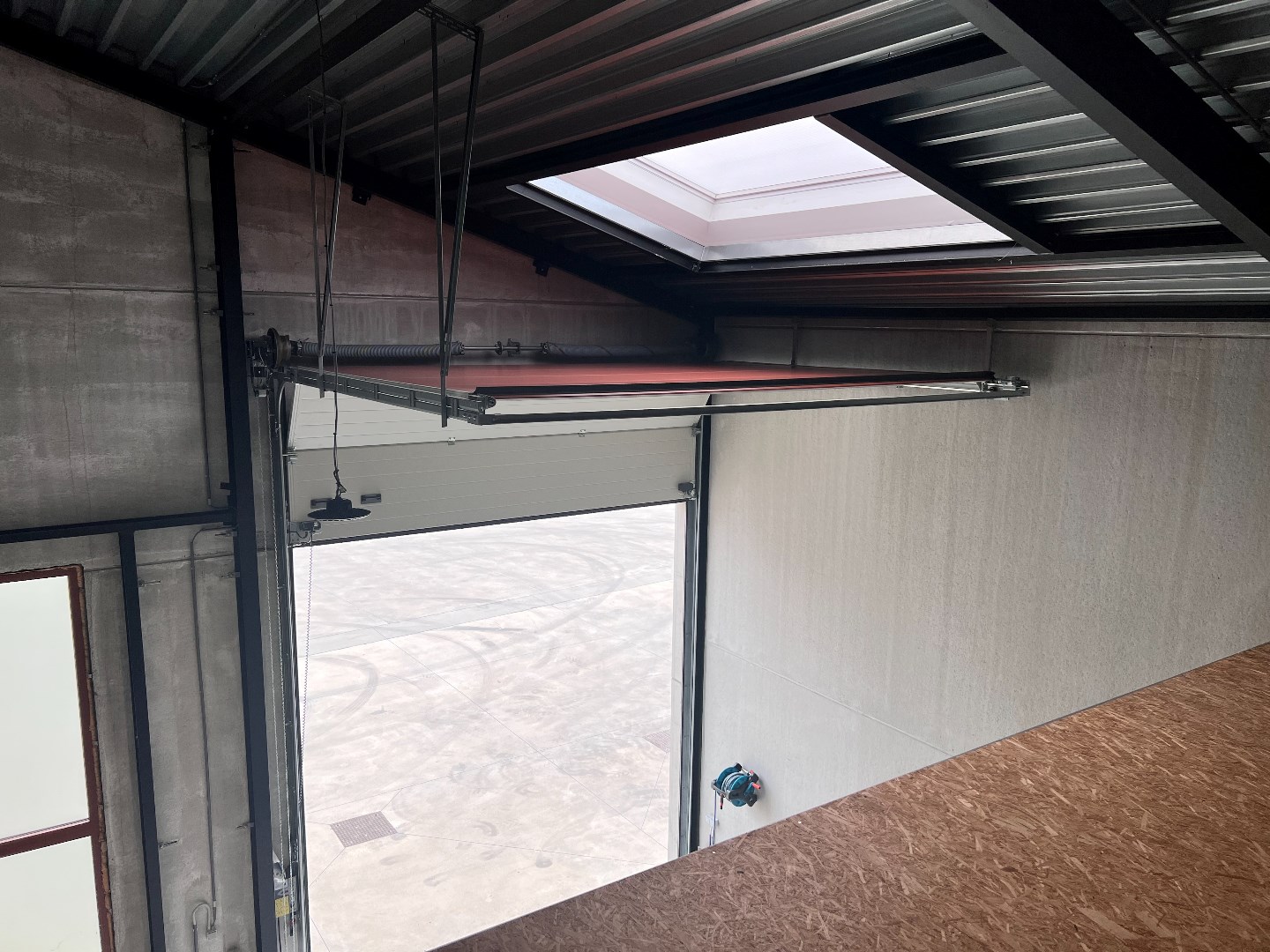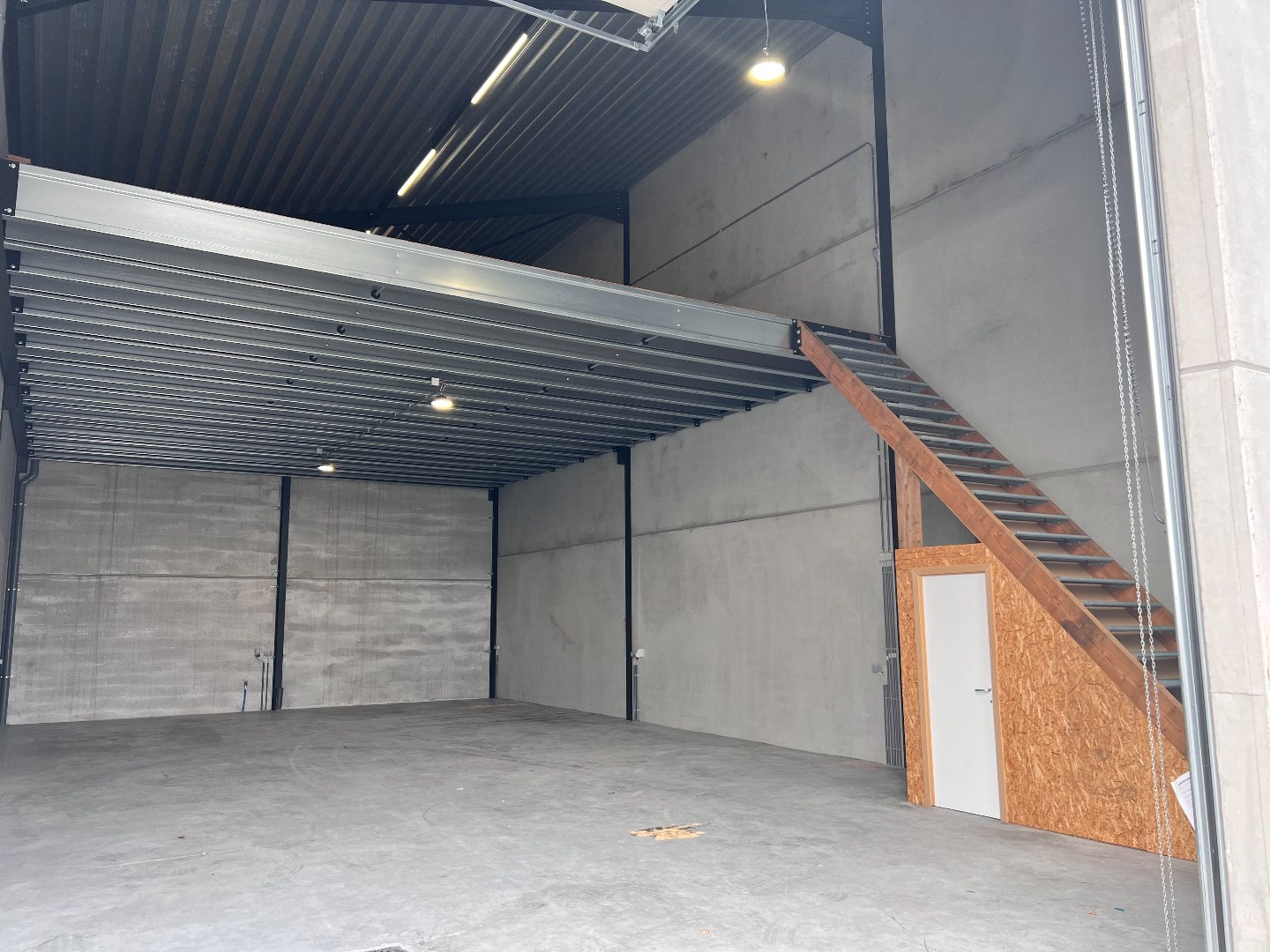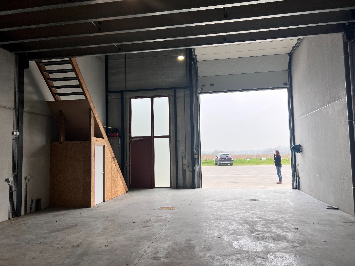 Loods grondppervlakte 160m², verdieping 100 m² met automatische poort van