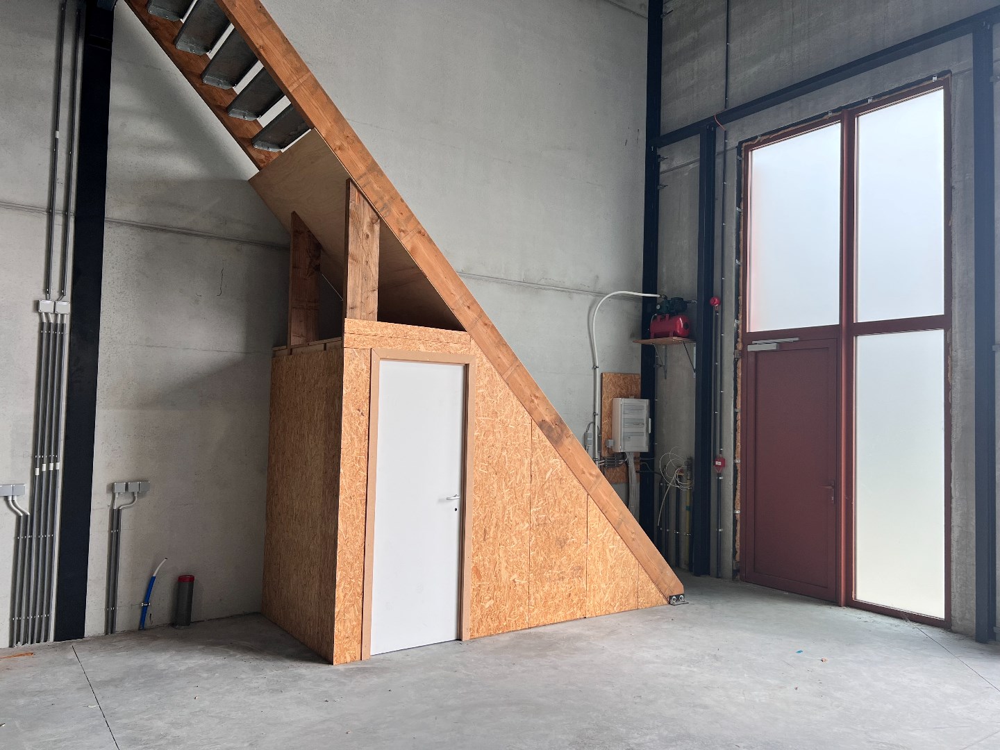 *Het verdiep kan 450kilo/m² dragen dus sterk genoeg voor burelen.