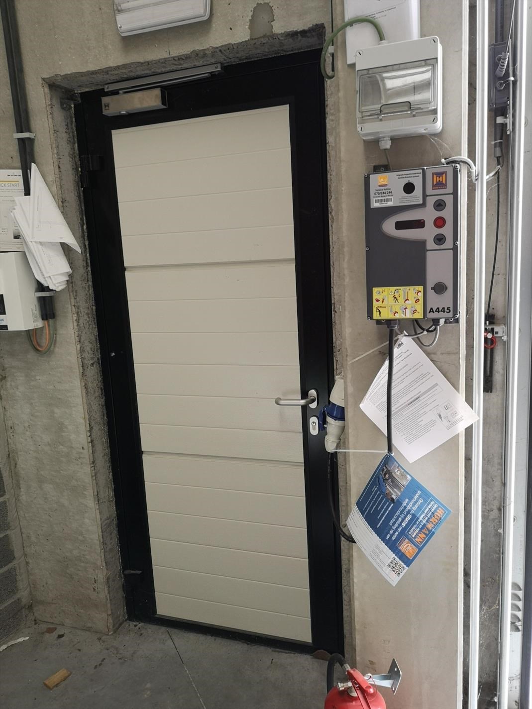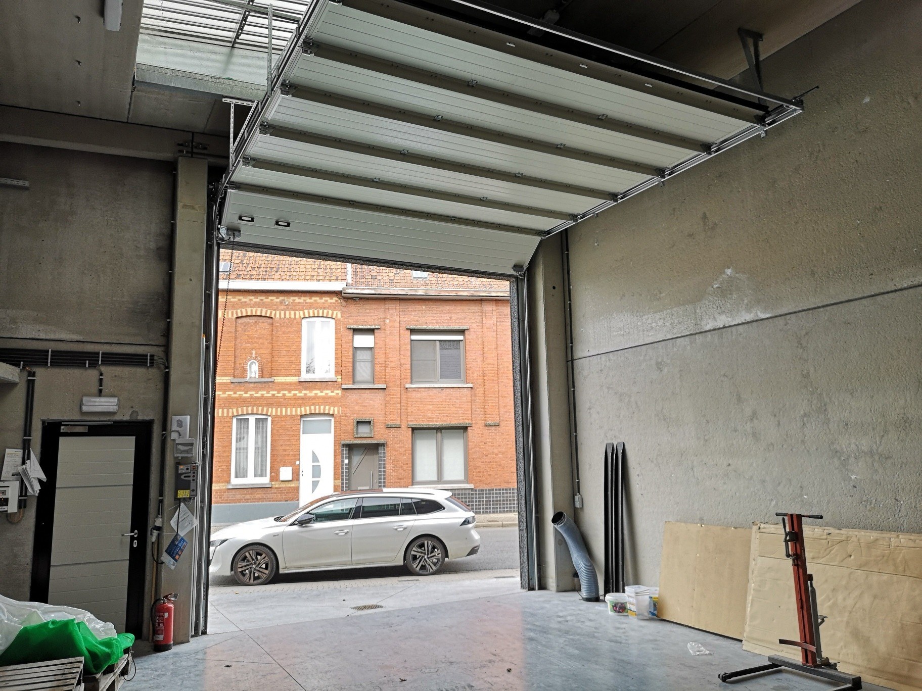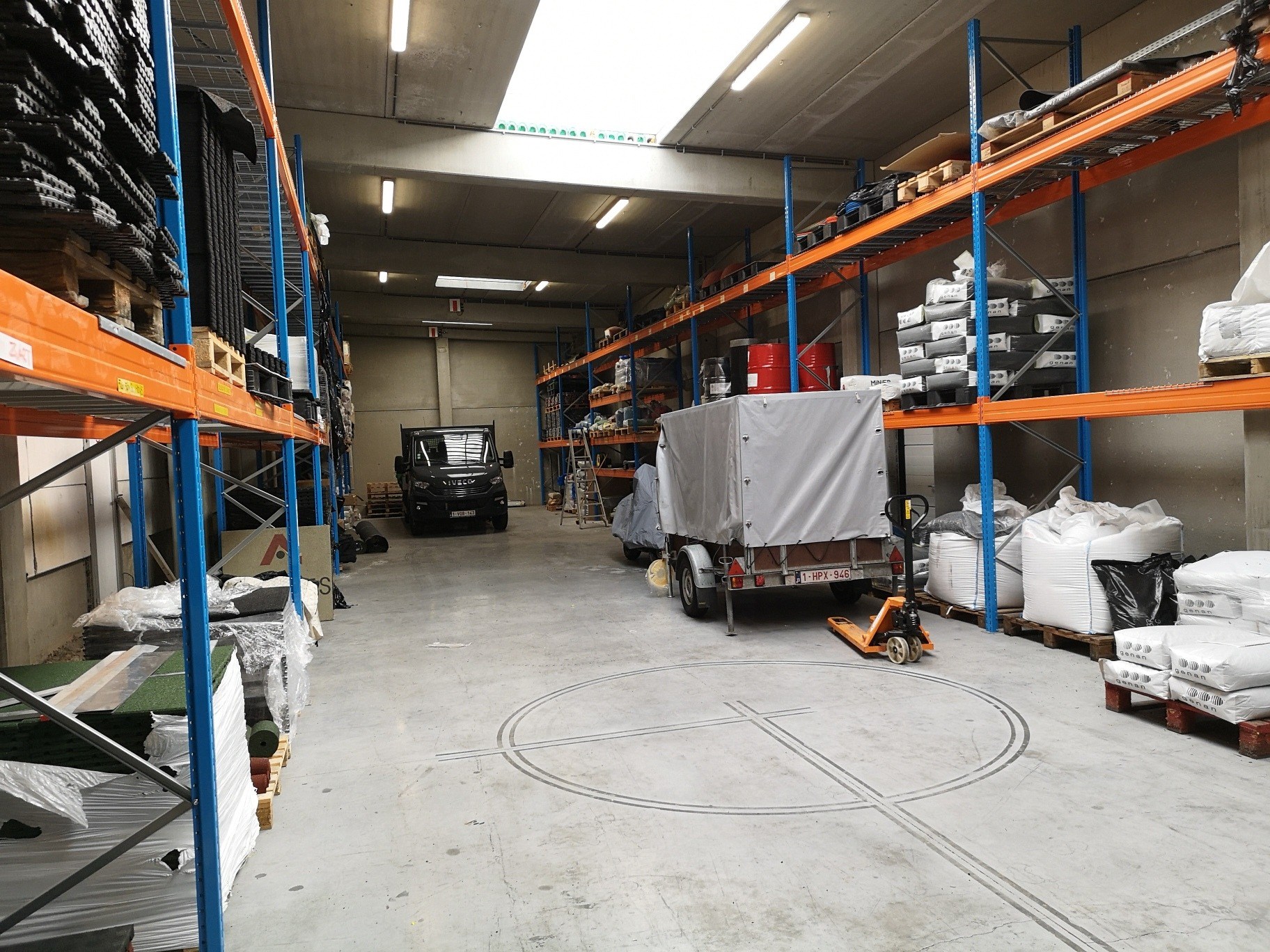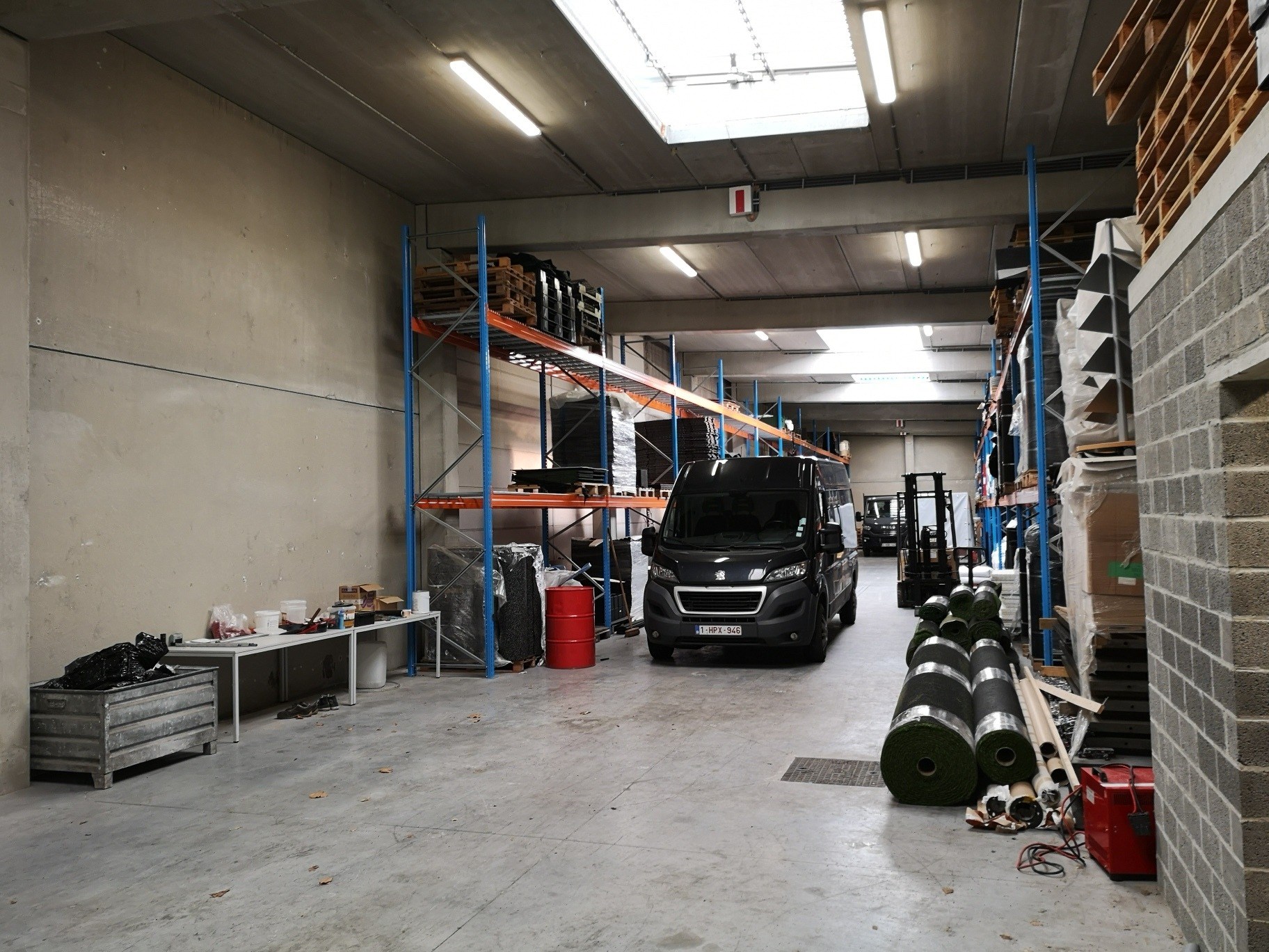 via een automatische sectionale poort en een afzonderlijke deur. De loods is afgewerkt met een poly-betonvloer, verlichting, stopcontacten,toilet,lichtkoepels en brandluiken ...! Gelegen tussen het centrum en de autosnelweg, vlotte bereikbaarheid.