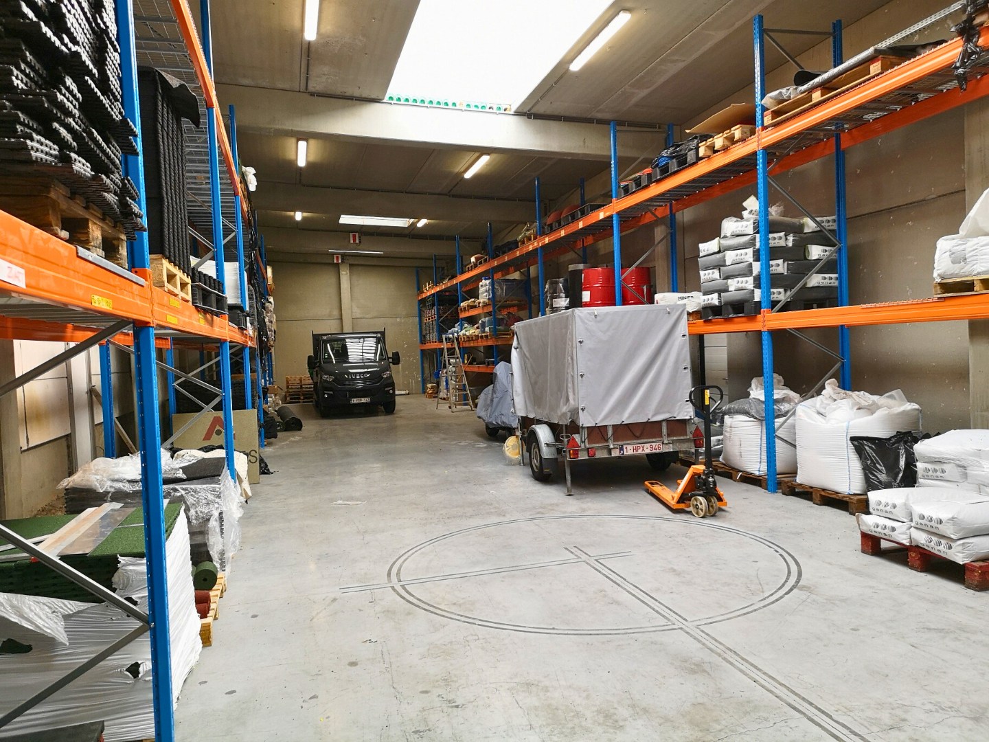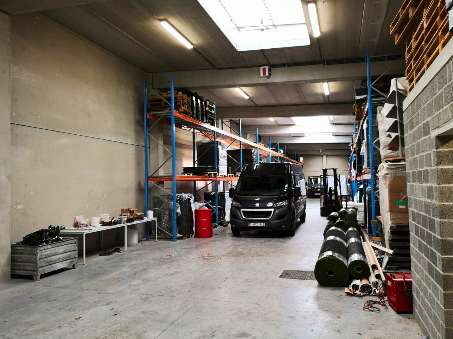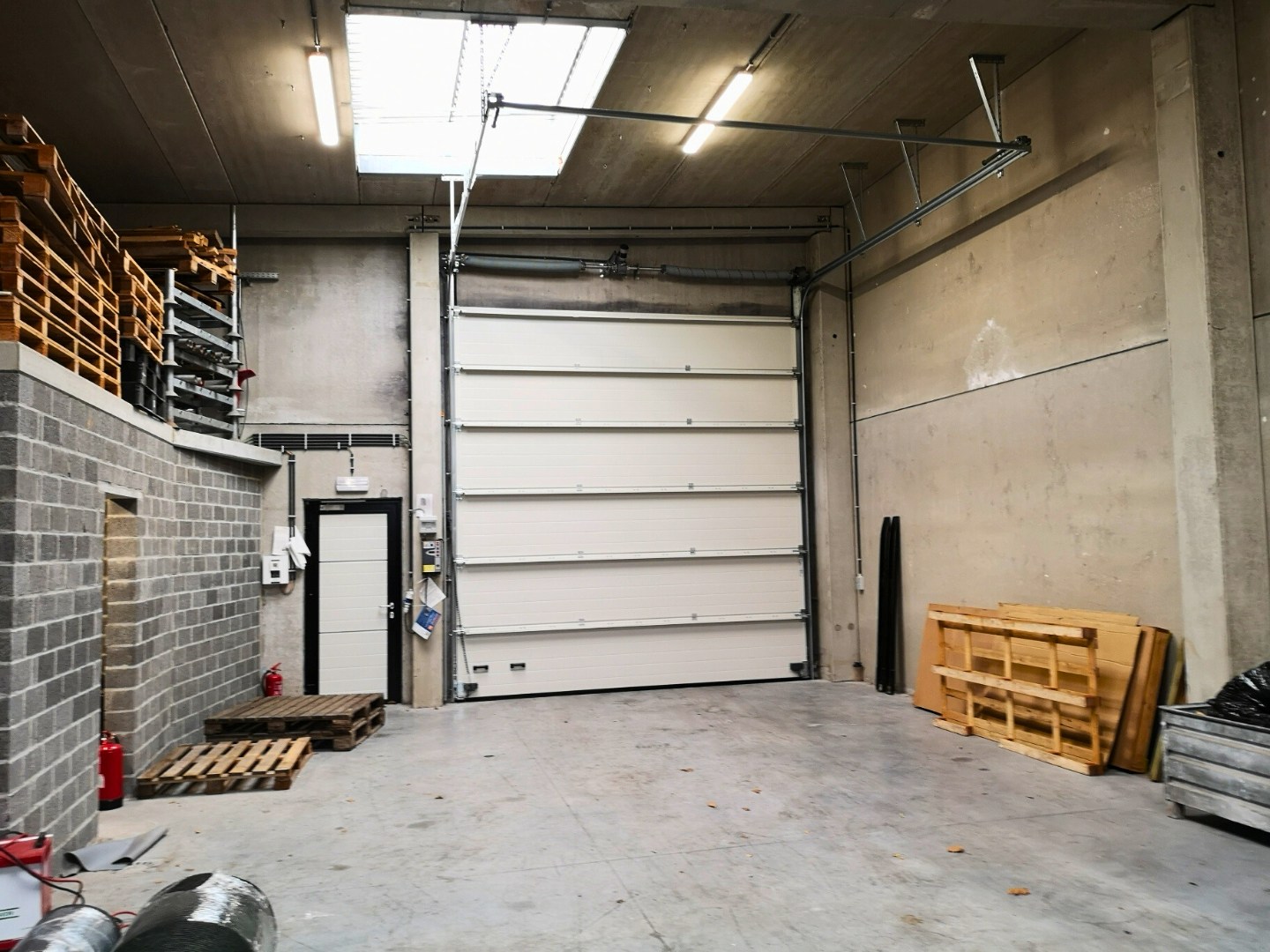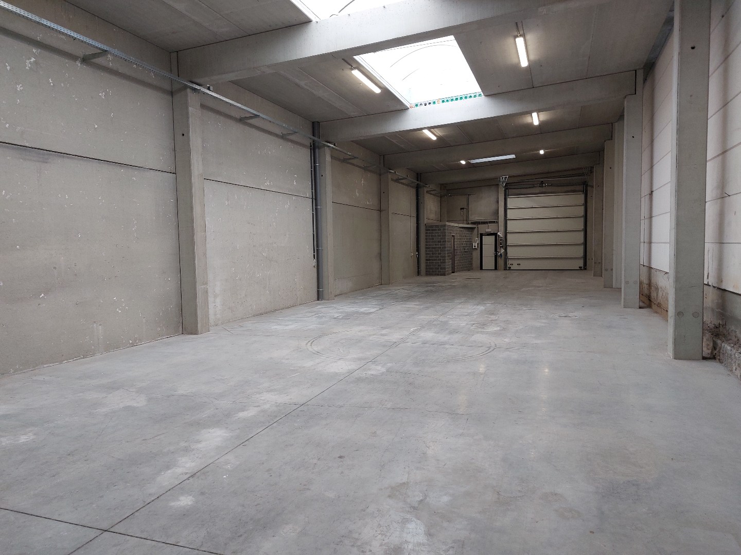 Nieuwbouwloods in betonstructuur van 430m² met een mooie vrije hoogte van 4m80, toegangkelijk via een automatische sectionale poort en een afzonderlijke deur. De loods is afgewerkt met een poly-betonvloer, verlichting, stopcontacten, toilet, lichtkoepels en brandluiken, ... Gelegen tussen het centrum en de autosnelweg, vlotte bereikbaarheid.