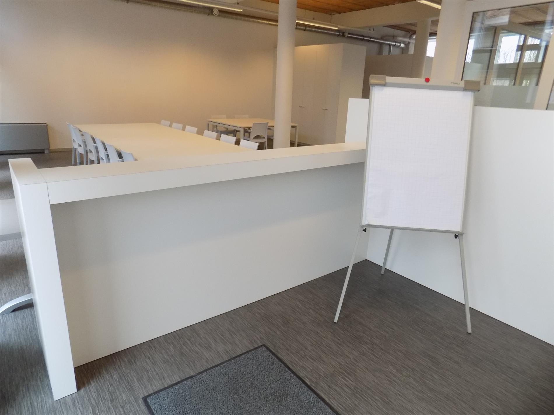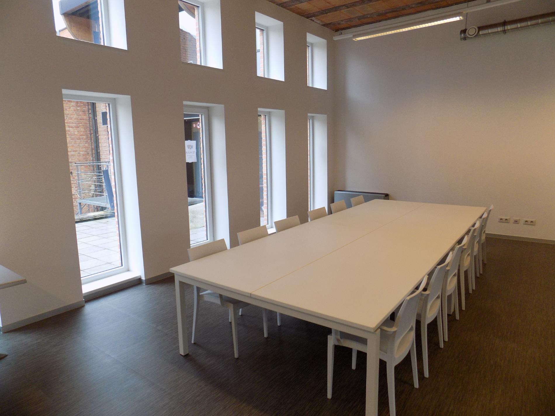 Nieuwbouw kantoor van 150m² (10m x 15m) op commercieel centrum Pottelberg, met 2 aparte glazen boxen die dienst kunnen doen als afzonderlijk bureel of vergaderruimte. Sanitair blok met keuken (vaatwas + frigo) en 2 aparte toiletten. Overal computervloer, desk & ingemaakte kast zijn inbegrepen in de huurprijs. Gratis parking.