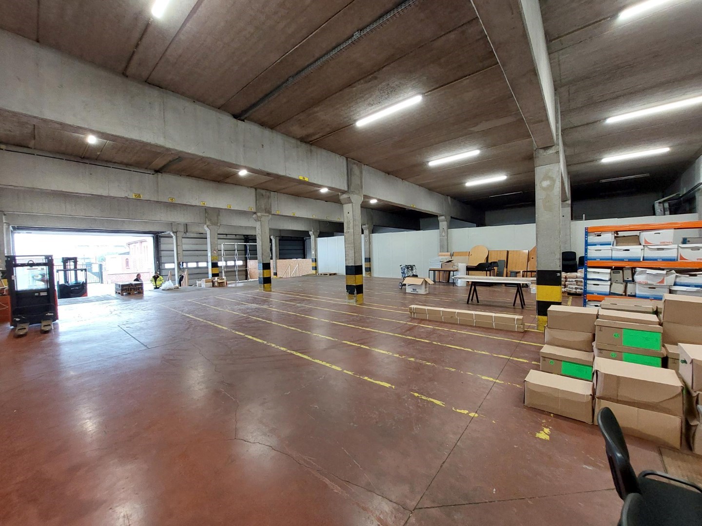 Strategisch goed gelegen magazijn van 240m²/480m² of 720m² met brede automatische sectionale toegangspoorten. Ideale ruimte voor stockage / mooie vrije hoogte.