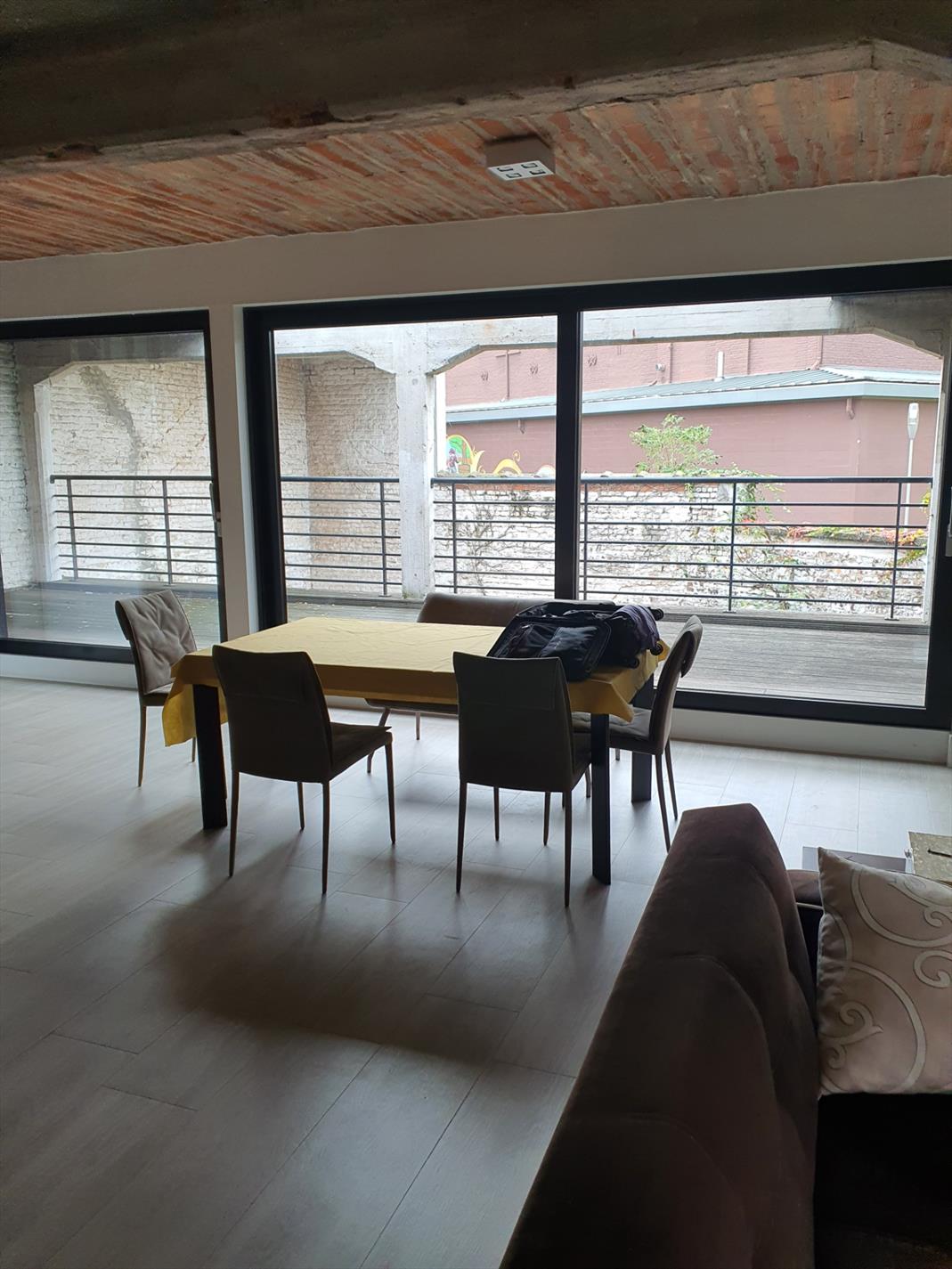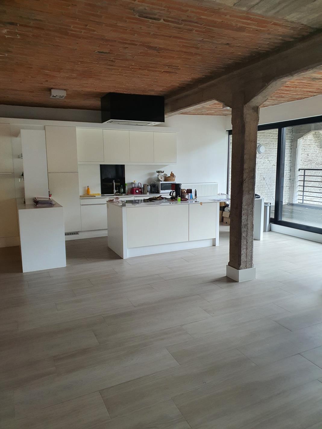 Loft 4, un appartement de type loft au 1er étage, comprenant un grand espace de vie, une cuisine super équipée avec îlot centrale (double four, lave-vaisselle, freezer, etc....) , une terrasse de 35m², 2 chambres à coucher, salle de bains, une salle de douche, des placards sur mesure, une grande buanderie / espace de rangement, ... Possibilité de louer un garage pour deux voitures (+150 €/mois)