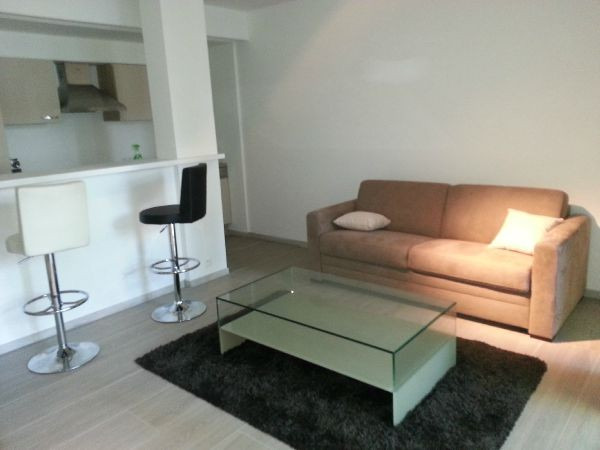 Très beau studio de 45m², entièrement remis à neuf, avec terrasse, le hall d' entrée à gauche duquel se situe la Sdd ou se trouve le lave linge, il conduit vers un séjour qui communique avec la cuisine américaine full équipée + cave.