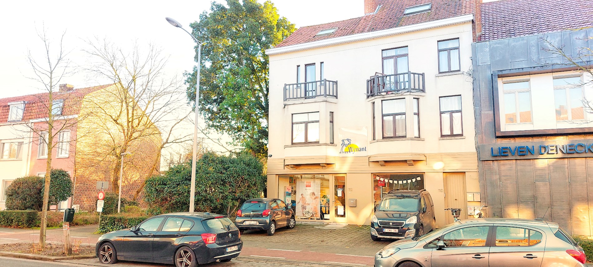 - Gelijkvloerse handelsruimte van 92m² + voorliggende parking