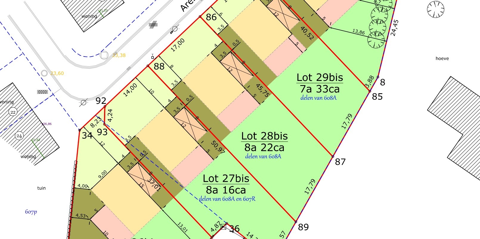 Lot van 791 - 733 - 1145 m² in dezelfde kleinschalige verkaveling.