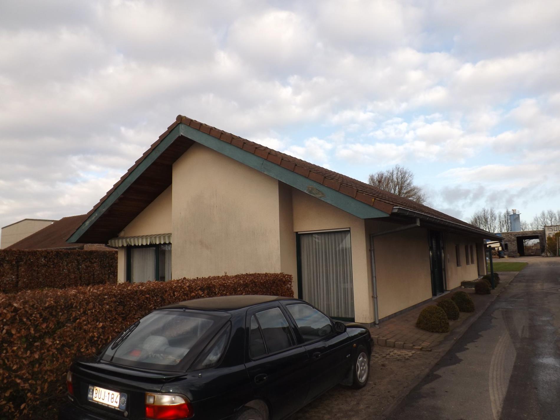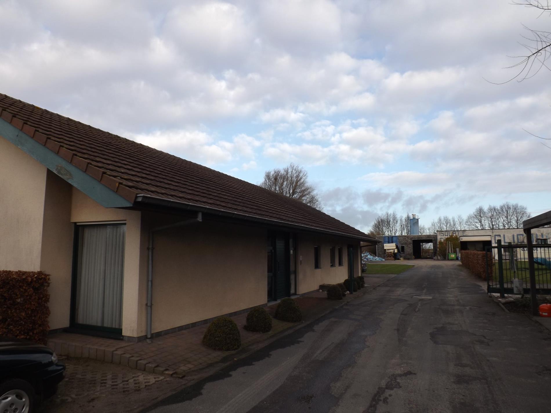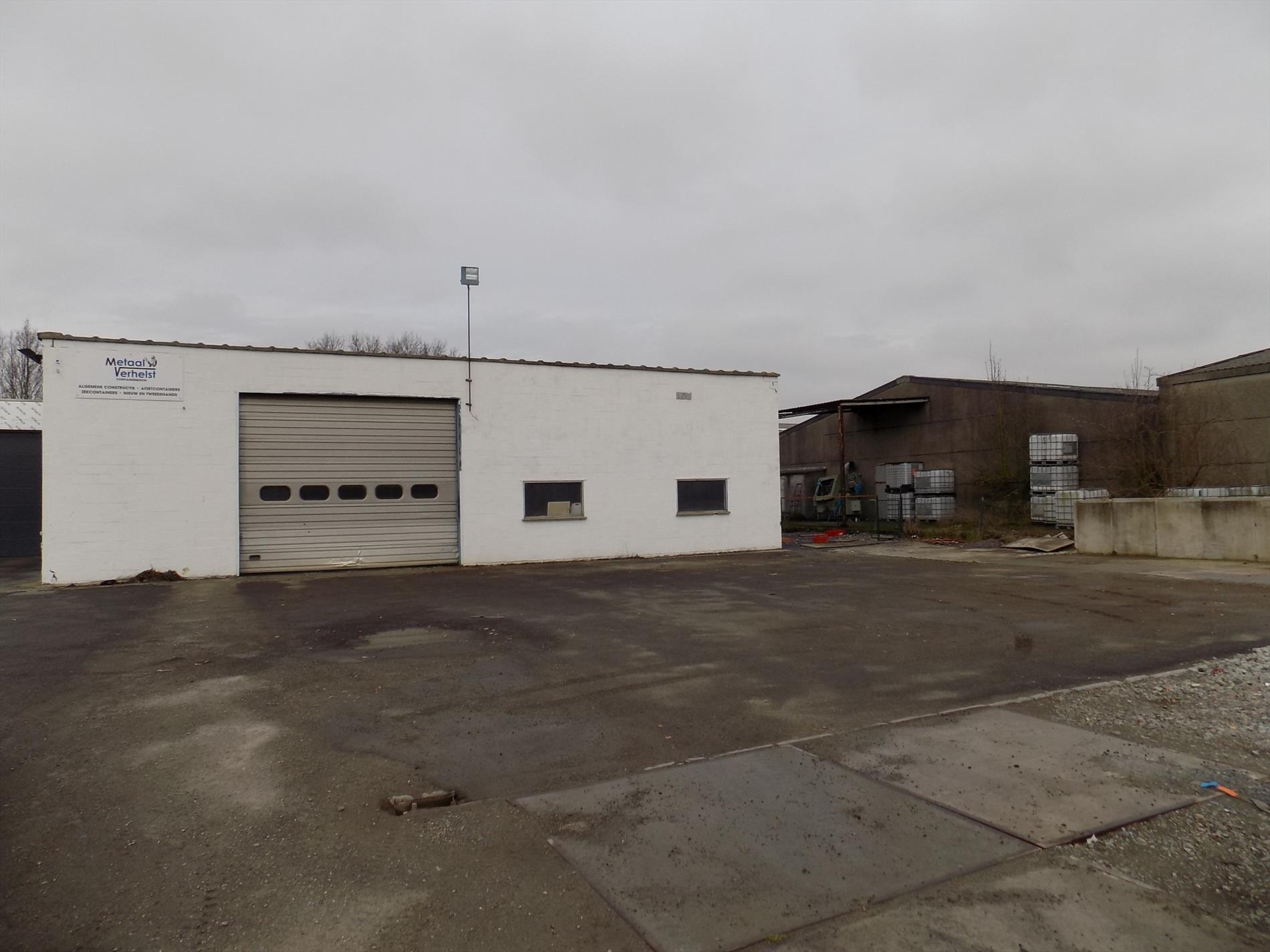 Loods van 750 m² op 2306 m² gelegen in een industriezone, met poly-beton vloer, ruime koer, hoge toegangspoort vooraan & poort achteraan. Met voorliggende bedrijfswoning of kantoor.