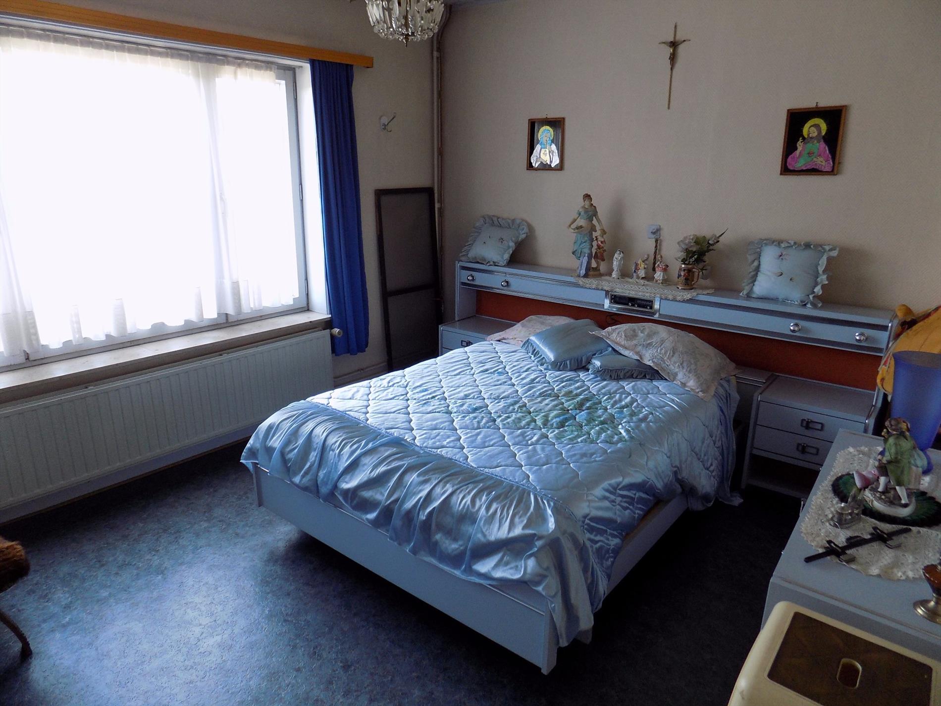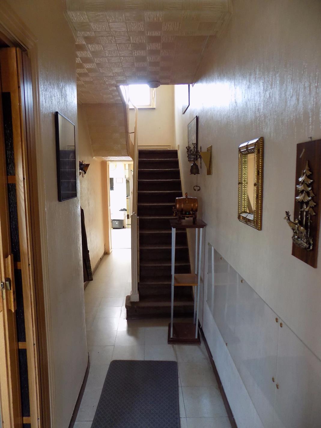Centraal gelegen ruime rijwoning bestaande uit inkom, ruime leefruimte met inbouwhaard , keuken, badkamer, berging, droge kelder, 4 ruime slaapkamers & aangename tuin. Dubbele beglazing & overal centrale verwarming op gas. Klein beschrijf mogelijk.