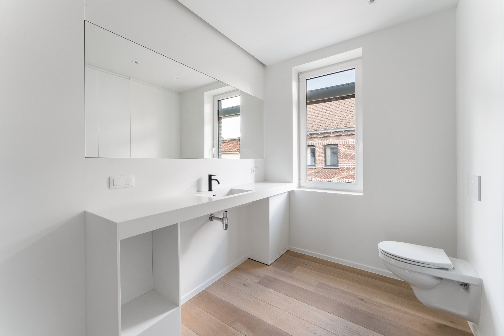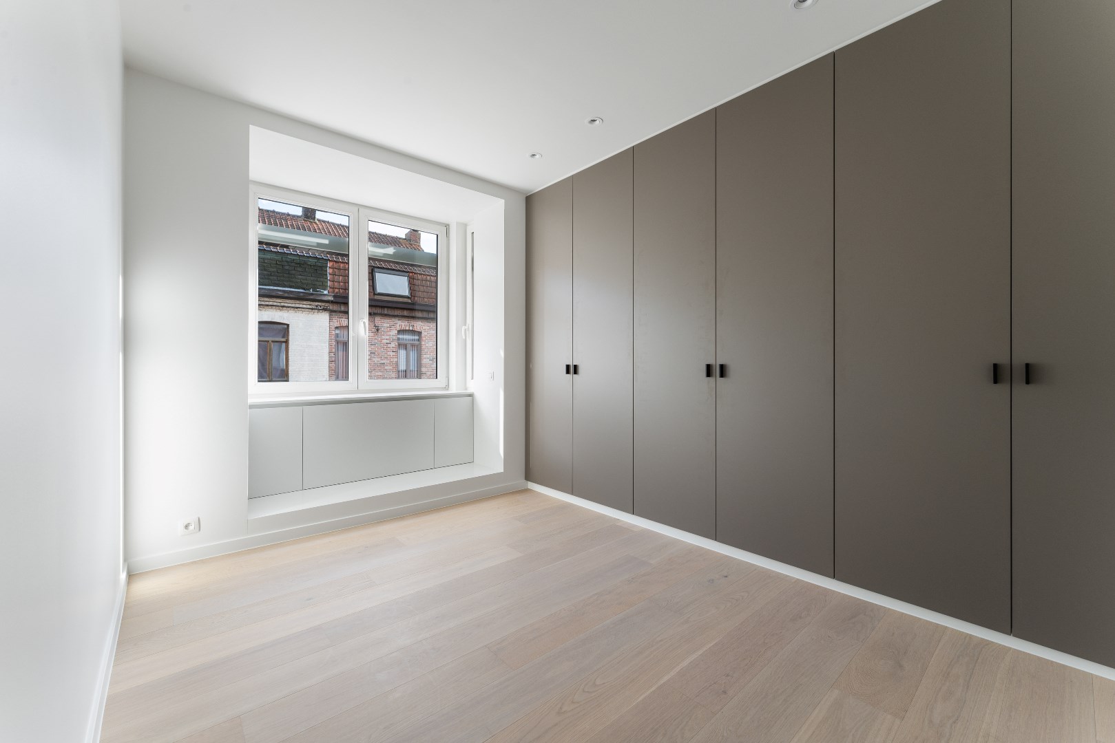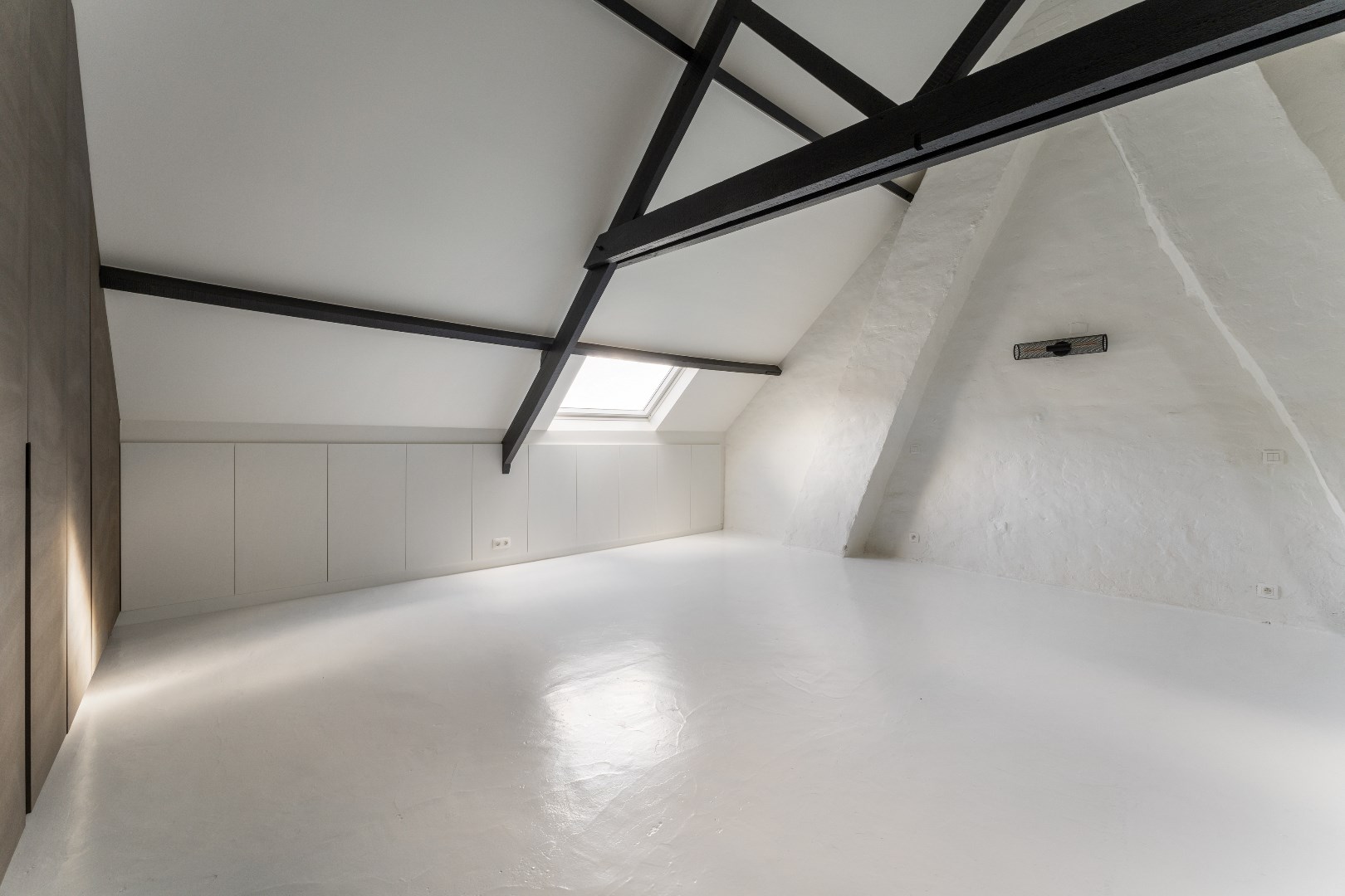 Op het eerste verdiep zijn er 2 slaapkamers, beide kamers zijn stijlvol afgewerkt met ingemaakte kasten & parket. De badkamer is tevens puur vakmanschap, de inloopdouche en wastafel zijn samengesmolten tot één geheel dankzij de afwerking in Corian. Werkelijk uniek voor de liefhebbers van smaak! Op het tweede verdiep hebben we de zolderkamer, terug volledig afgewerkt met maatmeubilair. In deze kamer hangt een leuke vibe, hier zouden we persoonlijk onze masterbedroom van maken. Uitzonderlijk is dat er enorm veel op maat gemaakte kasten in de woning werden geplaatst. Als surplus werd de woning volledig opgeschilderd. Het enigste wat u hoeft te doen is, verhuizen!