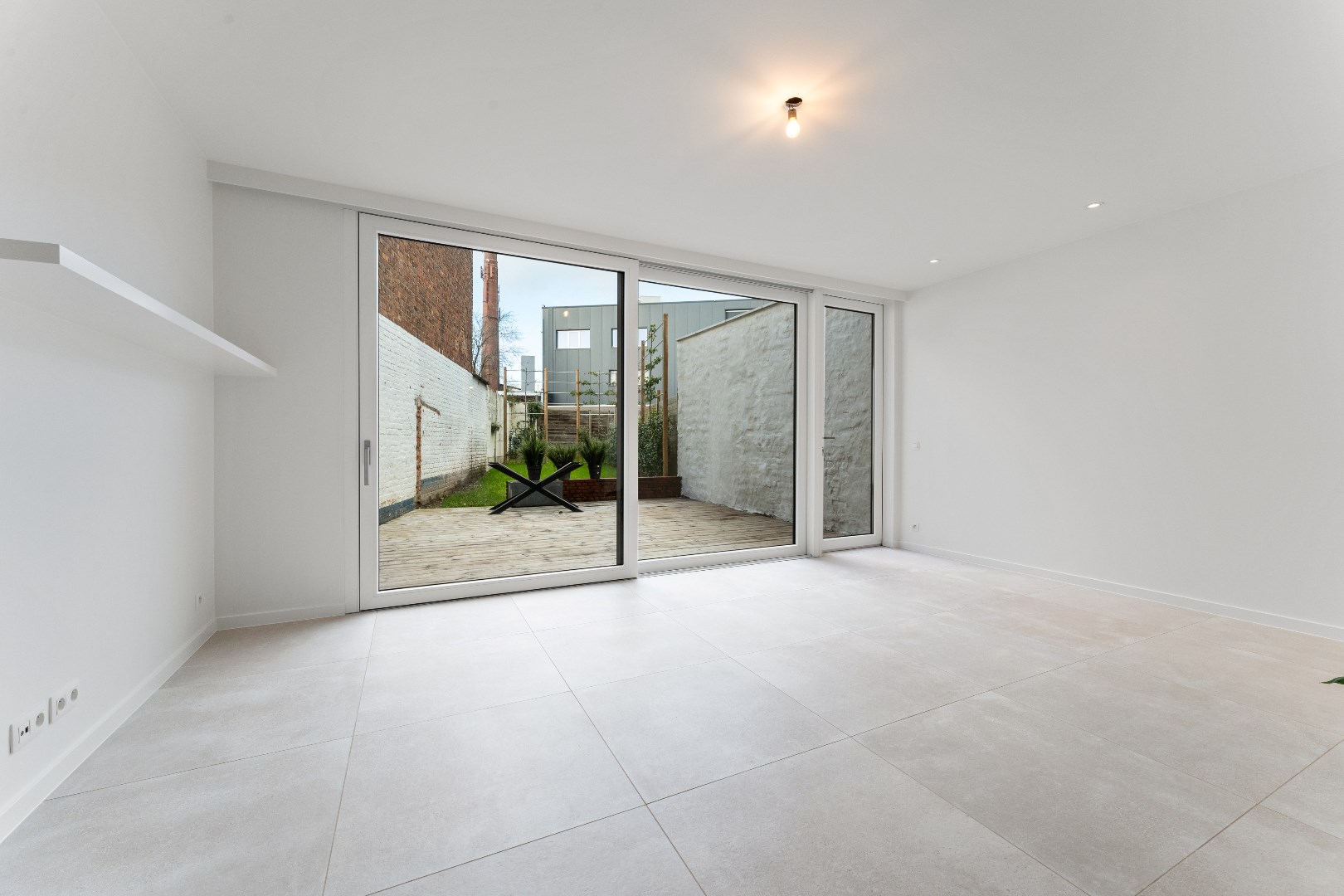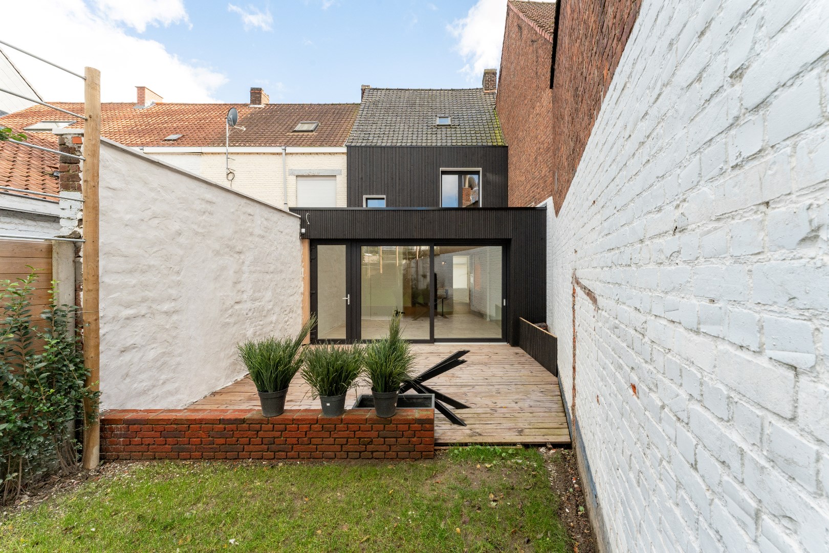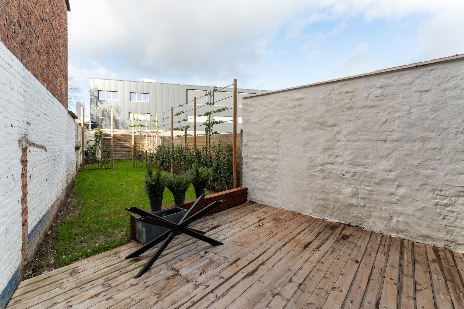Het tuingedeelte bestaat uit een terras, met aansluitend een onderhoudsvriendelijk gazon. De boompjes zijn reeds aangeplant en zorgen voor voldoende privacy.