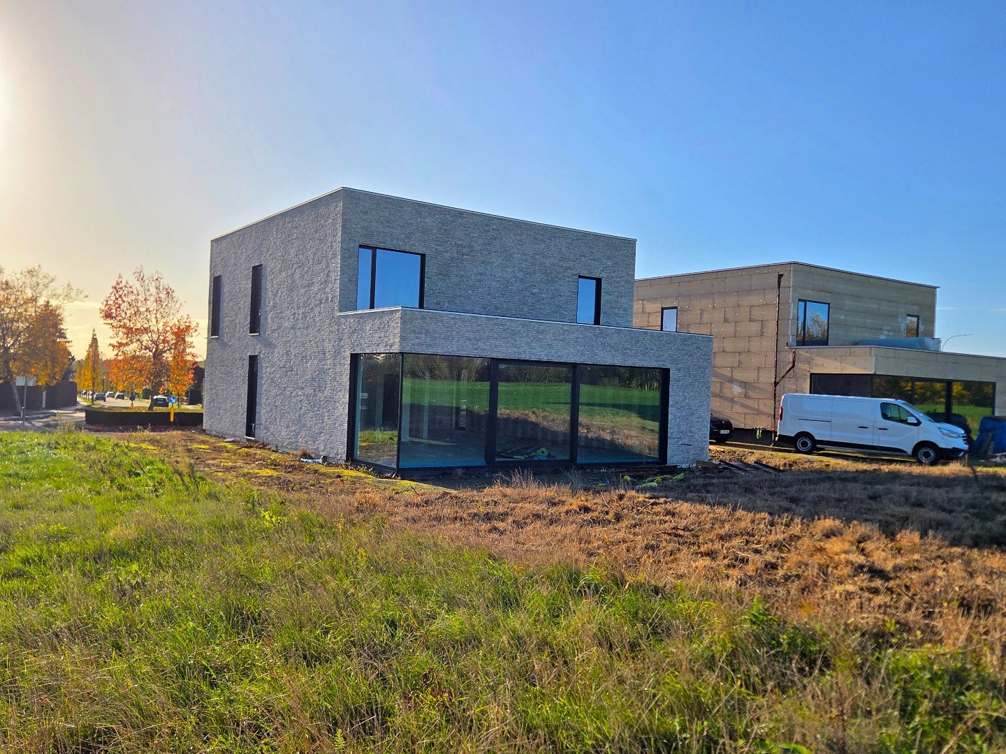 Op een perceel van 652m² staat deze unieke nieuwbouwvilla met een bewoonbare oppervlakte van 266m², de strakke architectuur valt meteen op. Tijdens het ontwerp werd er bijzonder veel aandacht besteed aan de energiezuinigheid (E 18 - label A). Een absoluut pluspunt van deze woning is dat u deze nog volledig kan afwerken naar eigen smaak. U heeft de volledige vrijheid waarbij u zélf de keuken of badkamer van uw dromen kiest. We betreden de villa via de centrale inkomhal met een gastentoilet en open trap. Het absolute hart van de woning is de uitzonderlijke ruime en lichtrijke leefruimte (95m²!!!) waar keuken, eetplaats en zithoek naadloos in elkaar overvloeien. Via deze riante leefruimte heeft u een open zicht op de achterliggende natuur. Dankzij de slimme indeling van de leefruimte is er bovendien nog ruimte voor een open of aparte bureauruimte. Verder beschikt het gelijkvloers over een praktische wasplaats en een technische ruimte. Op de eerste verdieping zijn er vier volwaardige slaapkamers en twee badkamers. Het absolute paradepaardje is de mastersuite: een combinatie van een slaapkamer, dressing en een eigen badkamer. Hier ervaart u het hotelgevoel in eigen huis! Bij deze villa werd rekening gehouden met de laatste nieuwe technieken zoals: vloerverwarming, warmtepomp, ventilatie, regenput, 14 zonnepanelen,.... De strakke look van de gevel in combinatie met de zwarte aluminium ramen en deuren maken het plaatje compleet. Bovendien is er de mogelijkheid om een carport te plaatsen.