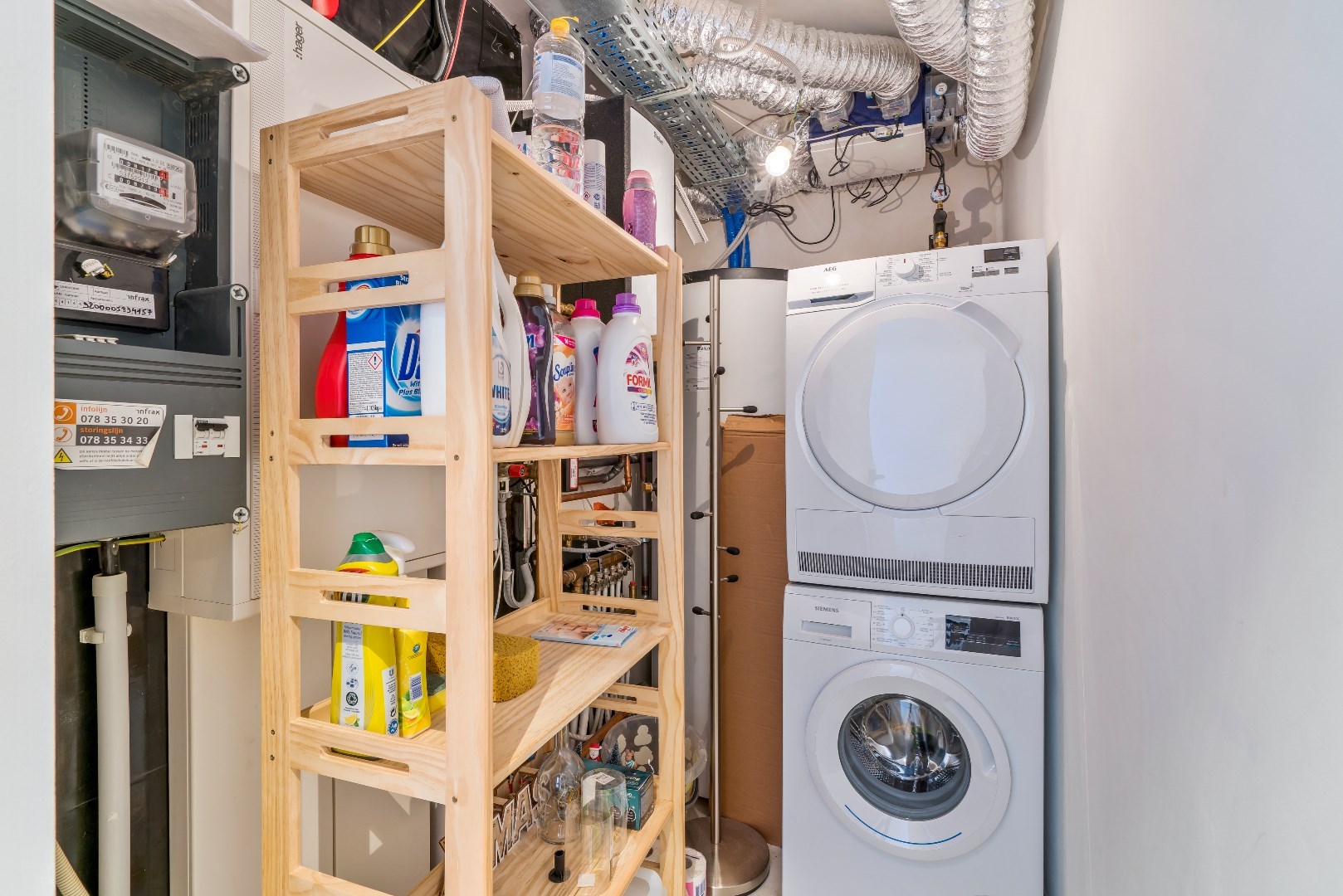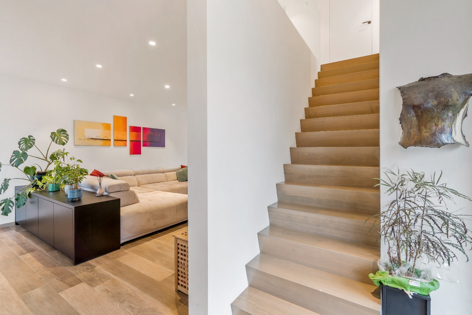 Deze epc A-topper (epc 18!) heeft de volgende indeling: inkom, gastentoilet, ruime living met open keuken. In de living werd een op maat gemaakt bureaumeubel geplaatst. De witte keuken is afgewerkt met een composiet werkblad & is uitgerust met Siemens toestellen, dampkap Novy,... Aanpalend aan de keuken is de berging. Op de eerste verdieping zijn er 3 slaapkamers. De masterbedroom kan ingericht worden met een dressing, ruime badkamer met inloopdouche, aparte toiletruimte & een technische ruimte.