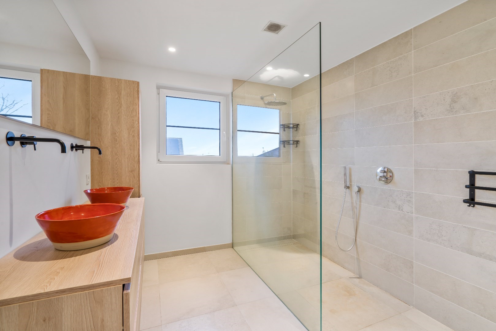 Qua technieken werd deze woning uitgerust met vloerverwarming, warmtepomp, domotica, led-verlichting, ventilatie type C, 10 zonnepanelen, hoogrendementsglas, regenwaterput (10.000l),...